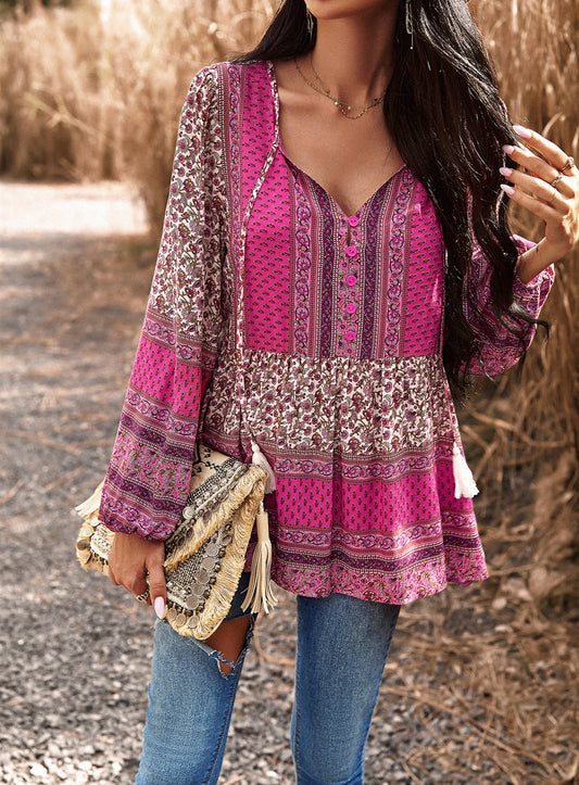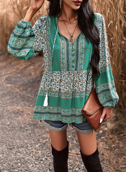 Boho Off Shoulder Printed Long Sleeve Blouse for Women