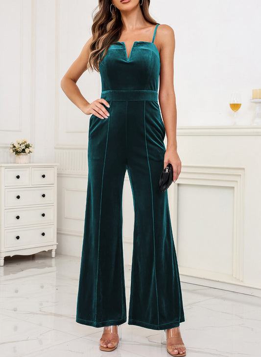 Green Sleeveless Halter Neck Jumpsuit with Backless Design