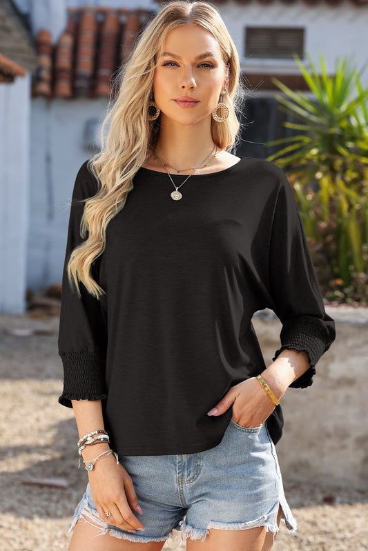 Crew Neck Ruffled Three-Quarter Sleeve Top