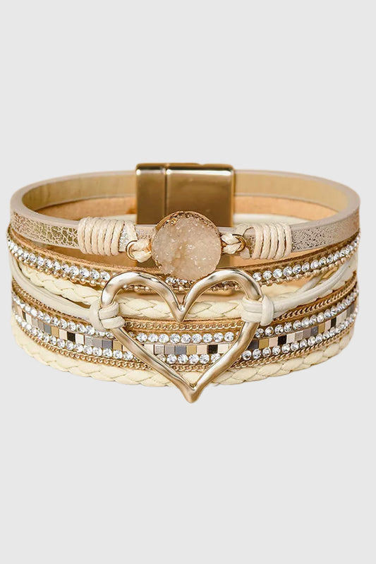 Beige Bohemian Heart Rhinestone Magnetic Buckle Bracelet