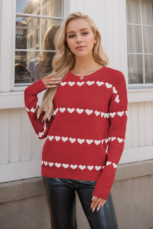 Sachet Pink 2-tone Heart Print Valentine Crew Neck Short Sleeve Sweater