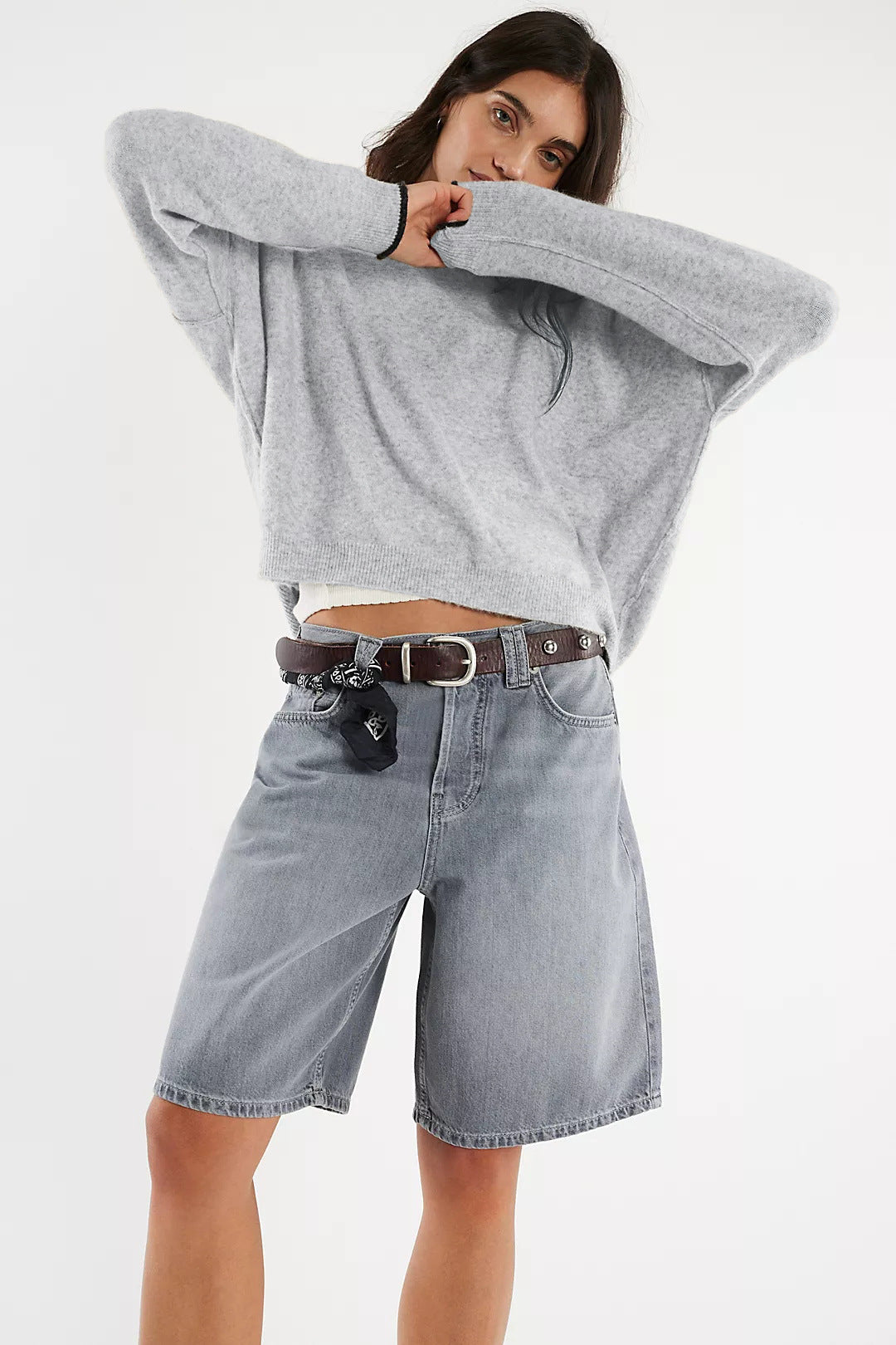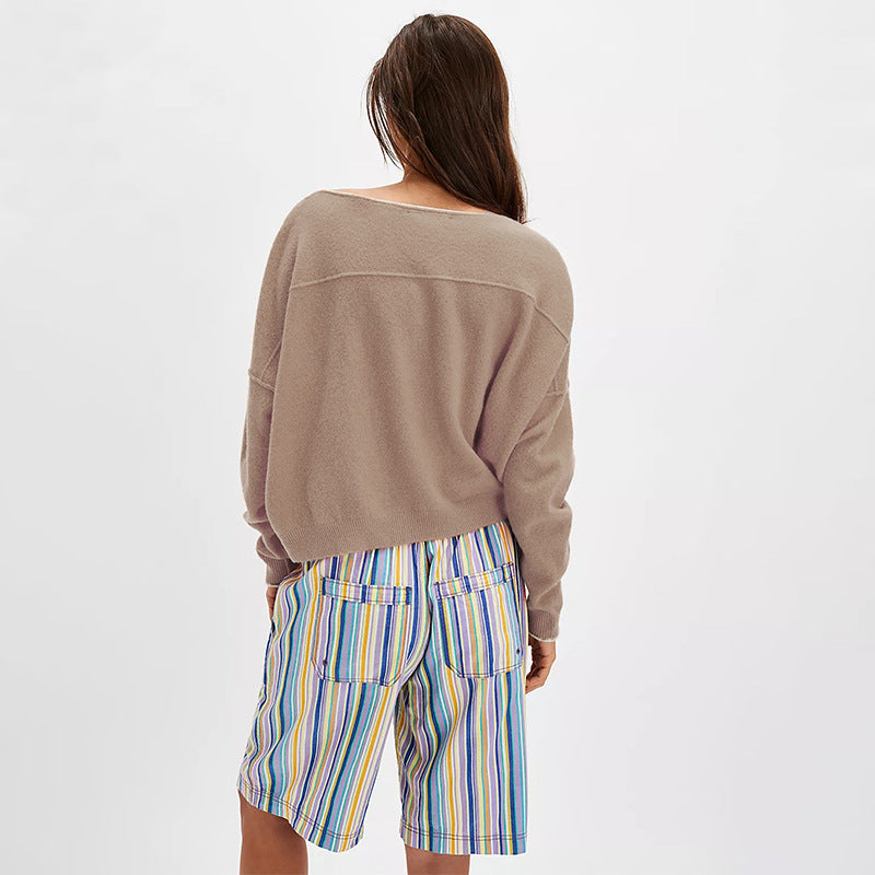 【Flattering Boxy Fit】 Dropped shoulders, relaxed sleeves, and a slightly cropped hem drape without clinging—easy to front-tuck or layer over dresses and tees.
