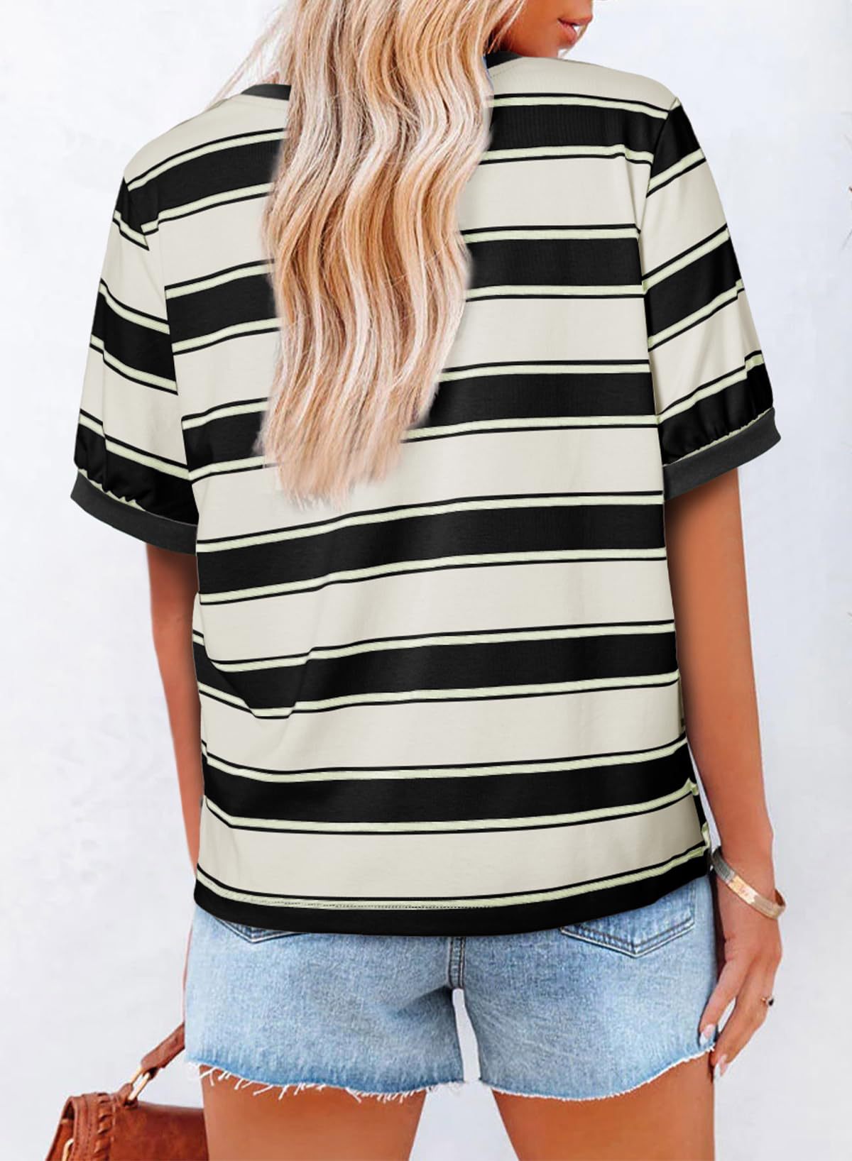 - DESIGN: Featuring a Chic Combination Of Vibrant Stripes And Flattering Crew Neck, The Short Sleeve Shirts For Women Seamlessly Blend Modern Fashion With Classic Appeal. The Contrasting Colored Collar And Cuffs Bring a Playful Touch To The Design