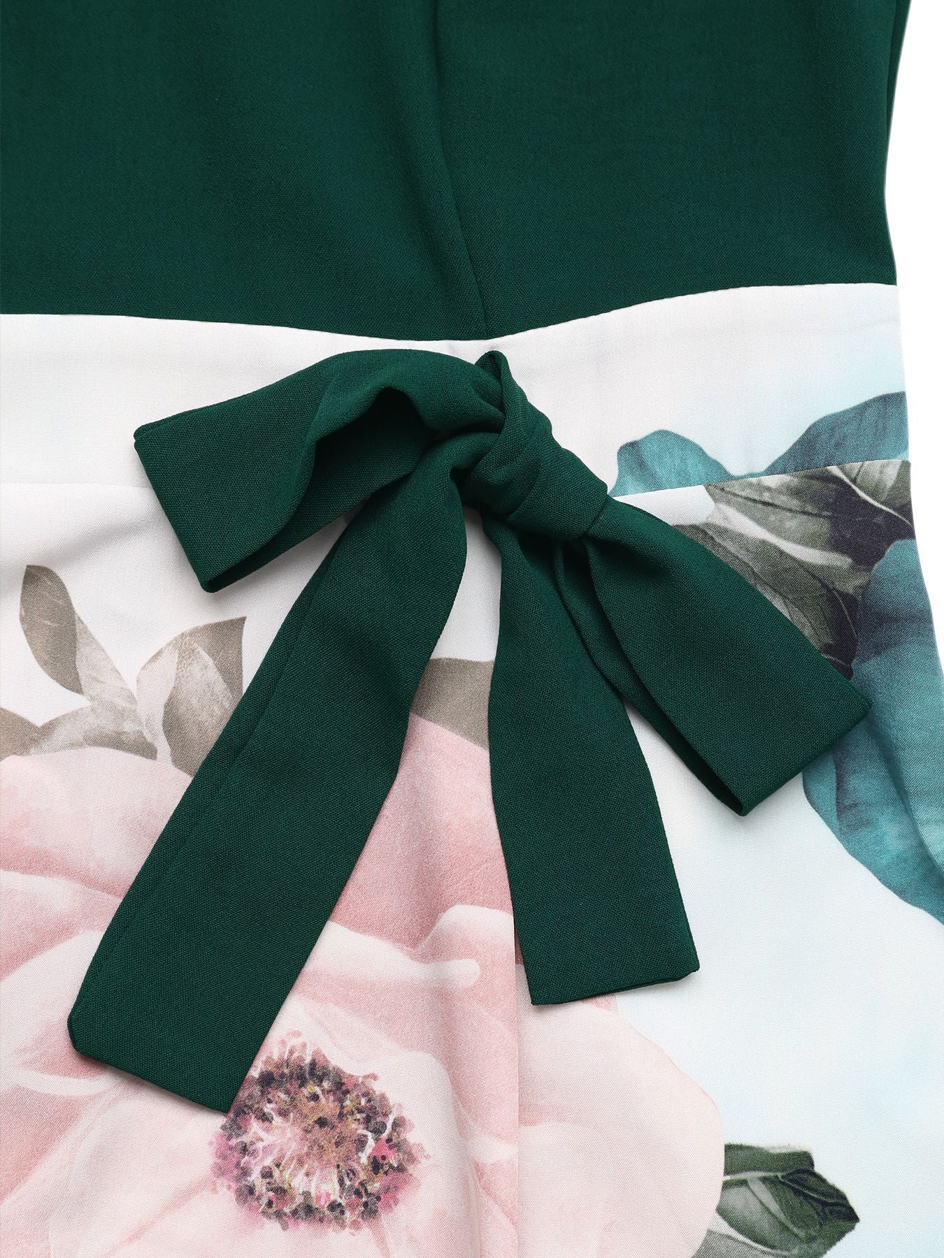 Floral Print Short Sleeve Patchwork Maxi Dress