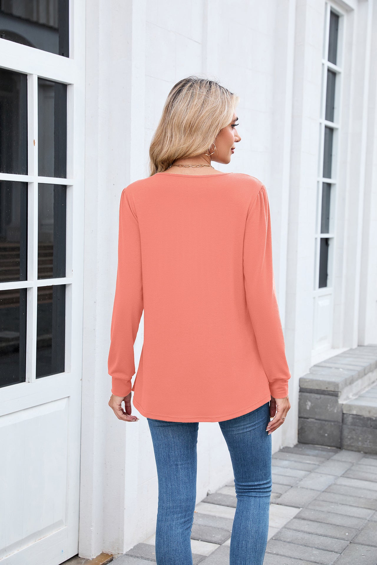 【Rich Colors, Full Sizes】 Available in White, Black, Navy, Wine, Coral, Green, and more. Sizes S–XXL. Keywords: pleated top, long sleeve tee, casual tunic shirt for women.