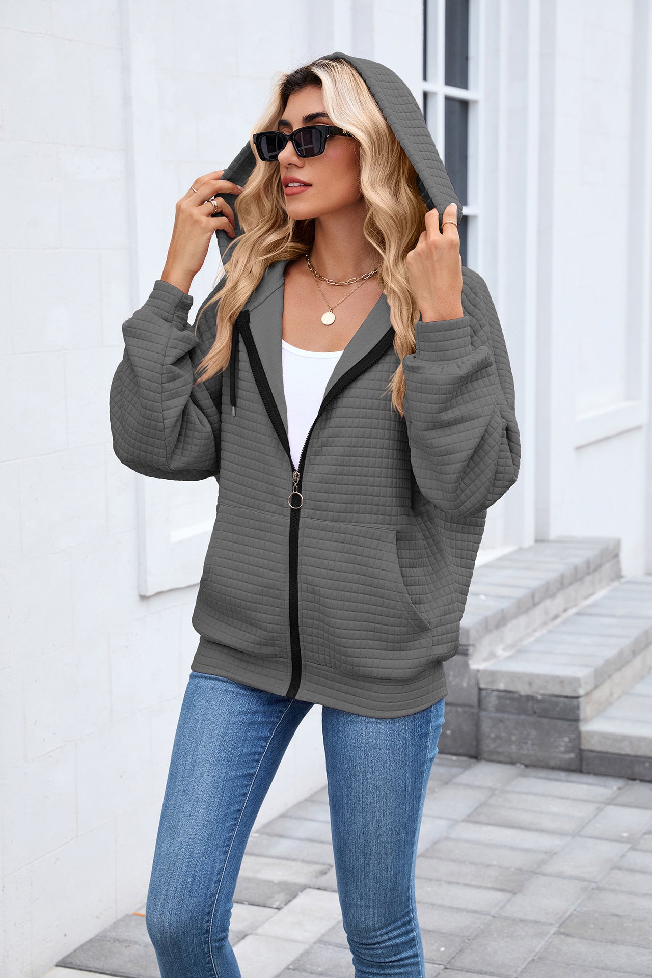 Quilted Zip-Up Hoodie Jacket | Casual Long Sleeve Sweatshirt