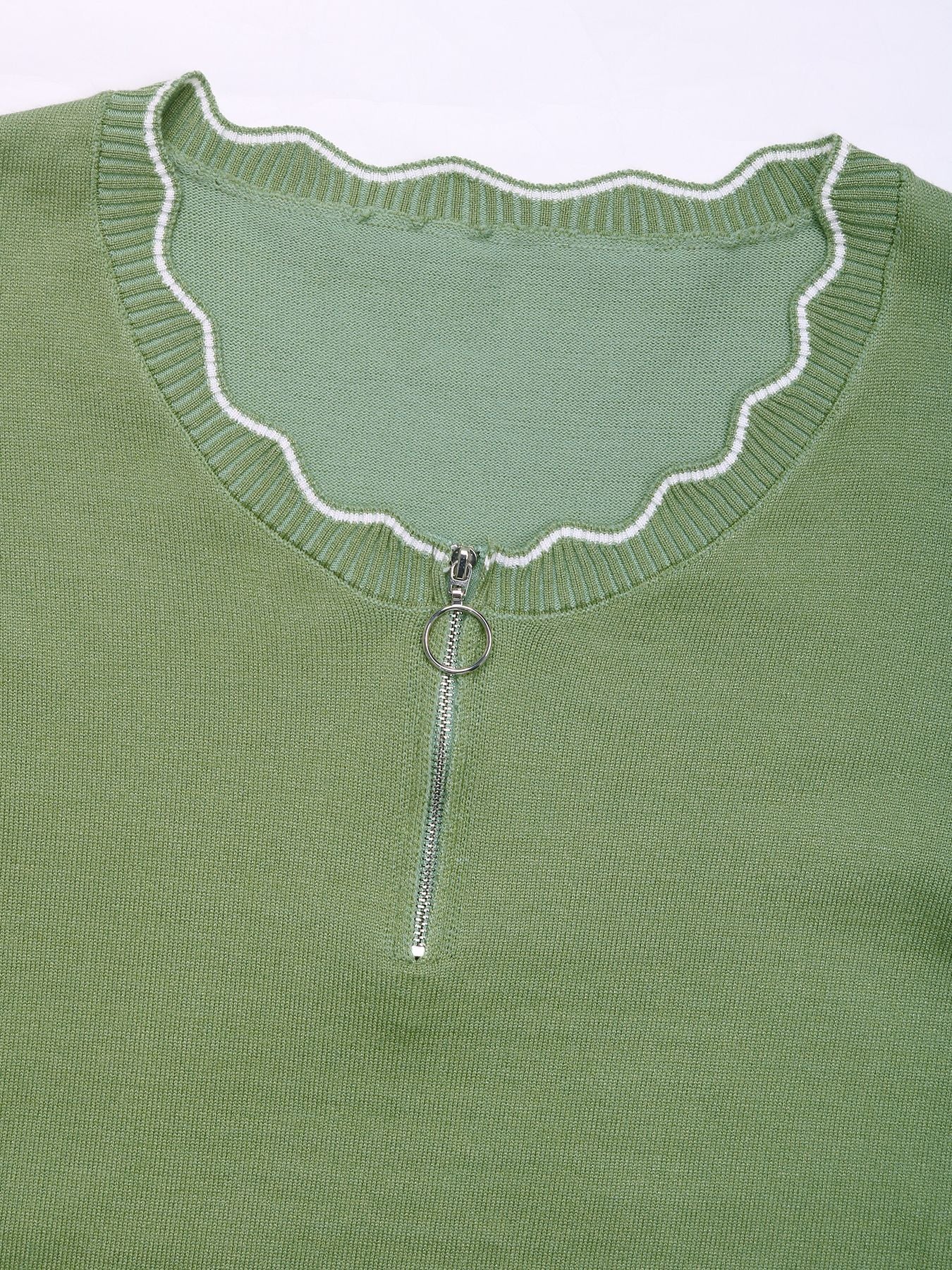 Zipper Pullover Round Neck Contrasting Edge Knitted Sweater