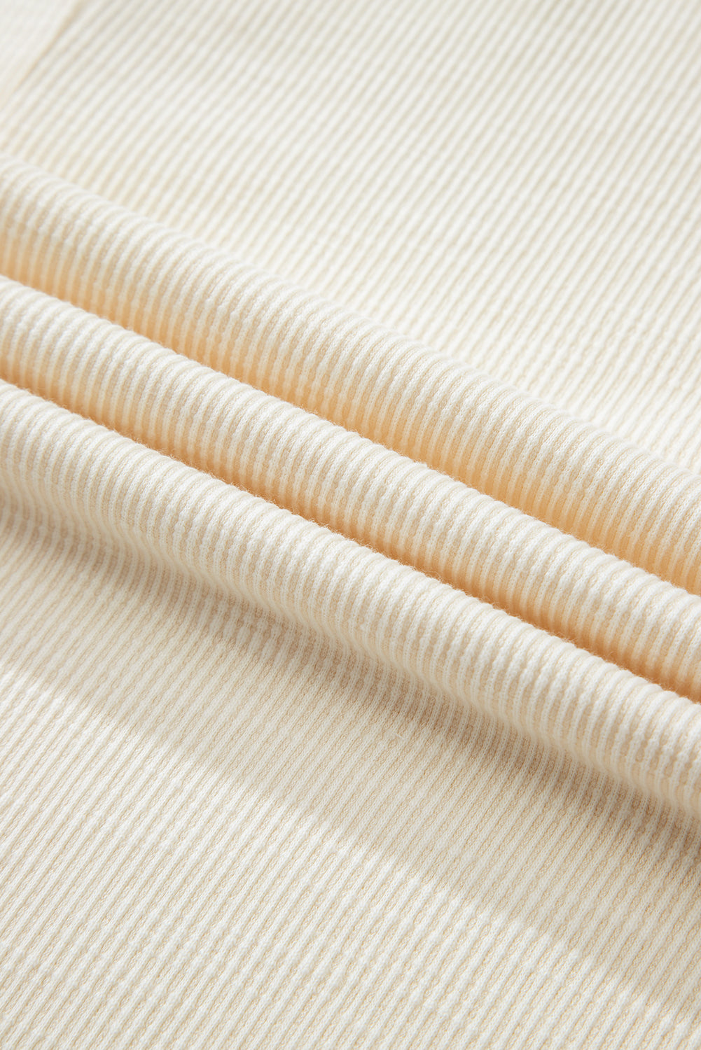 Apricot Plus Size Floral Patchwork Ribbed Puff Sleeve Top