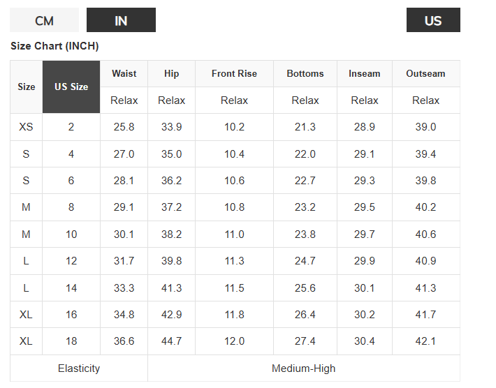 Size Chart (INCH)
