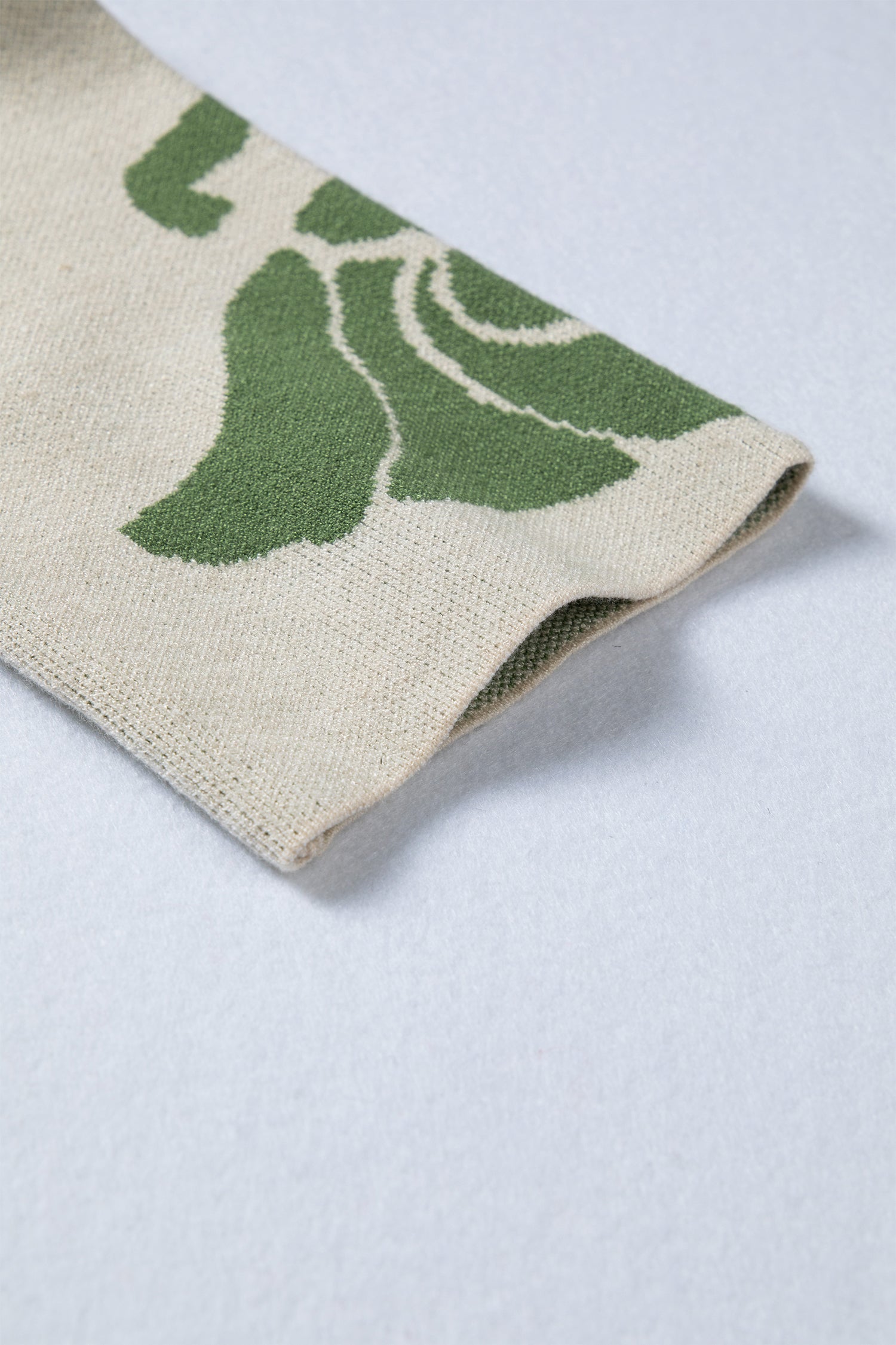 Beige Bold Flower Pattern Wide Sleeve Baggy Sweater