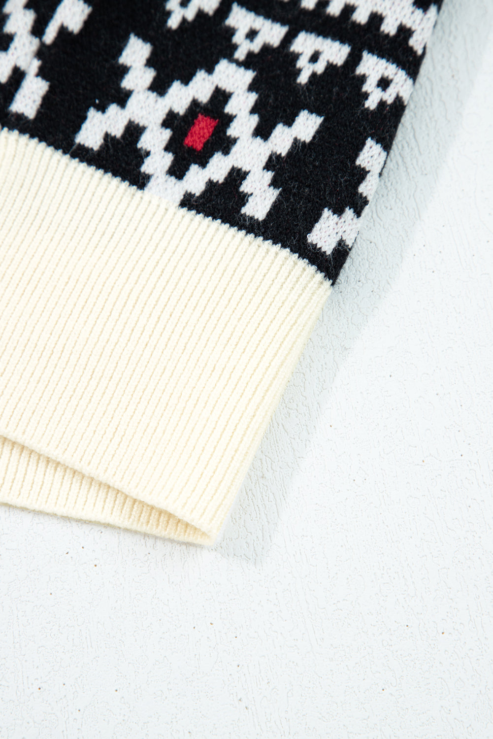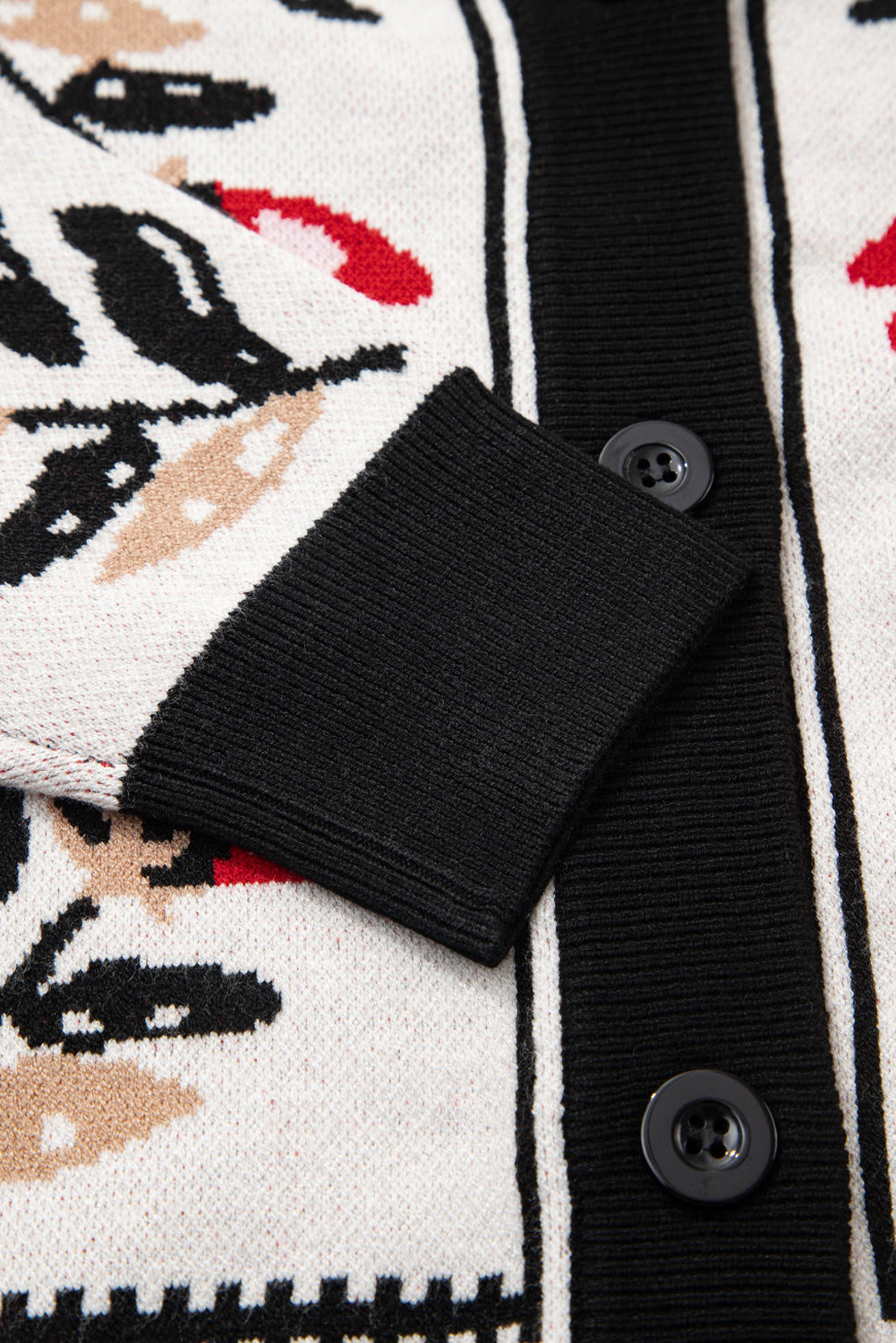Beige Floral Print Buttoned Front V Neck Knit Cardigan