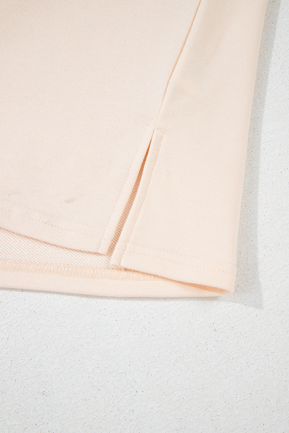 Beige Plus Size Flower Patched Side Slits Crewneck Top