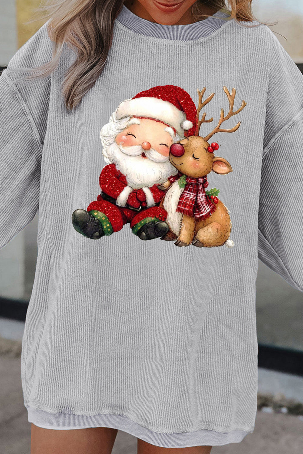 Cozy Christmas Santa Claus and Reindeer Pattern Oversized Sweater