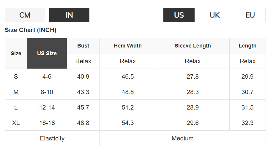 Size Chart (CM)