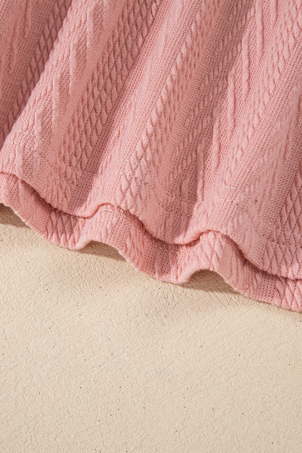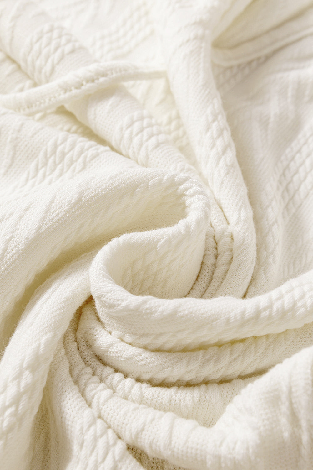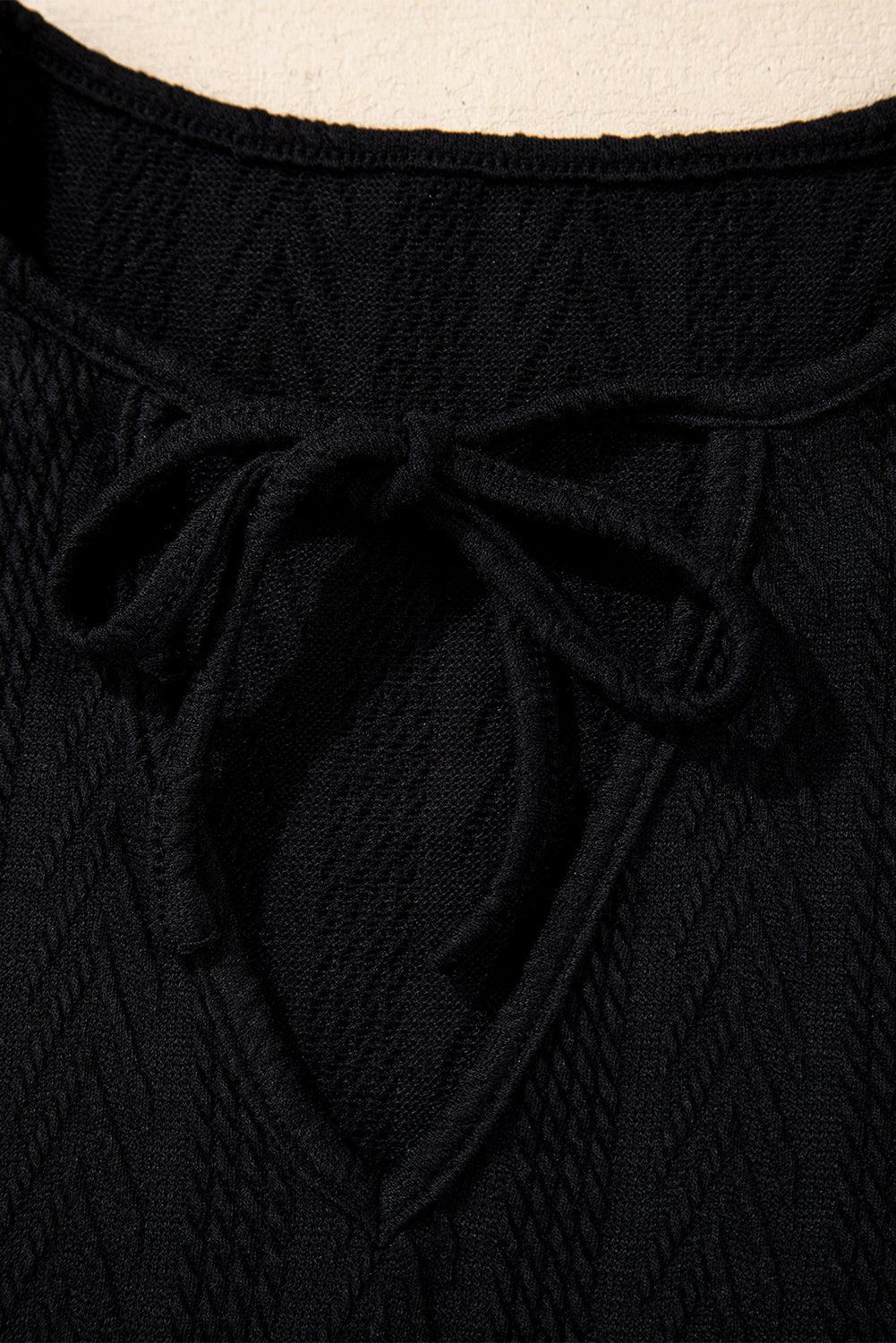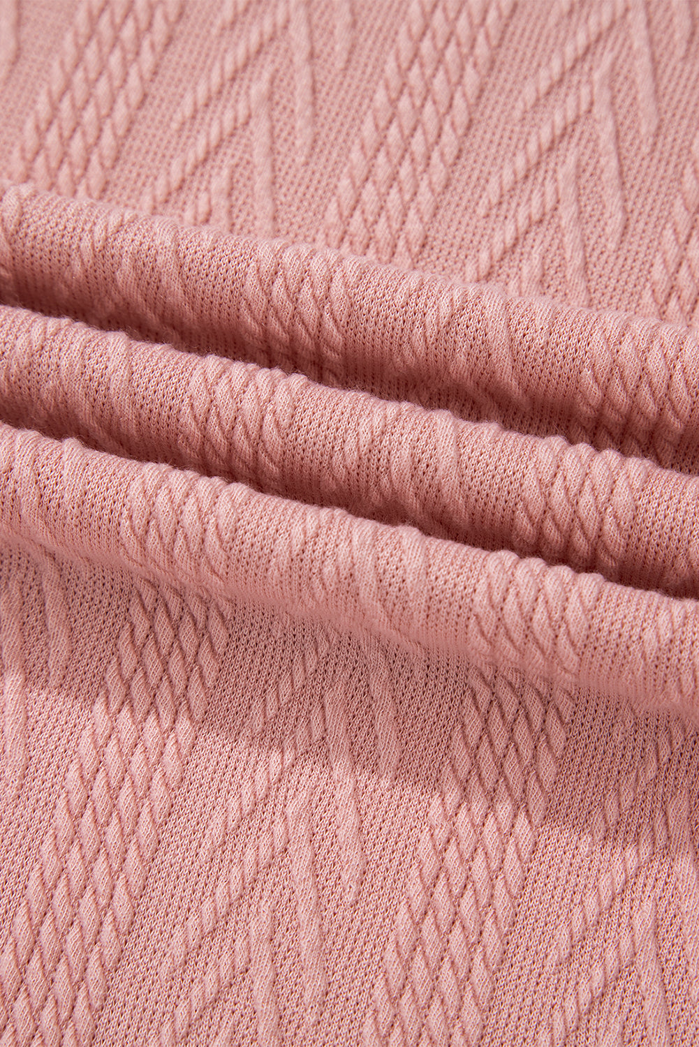 Floral Patchwork Textured Knit Drawstring V Neck Blouse