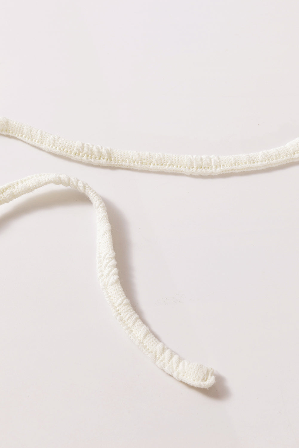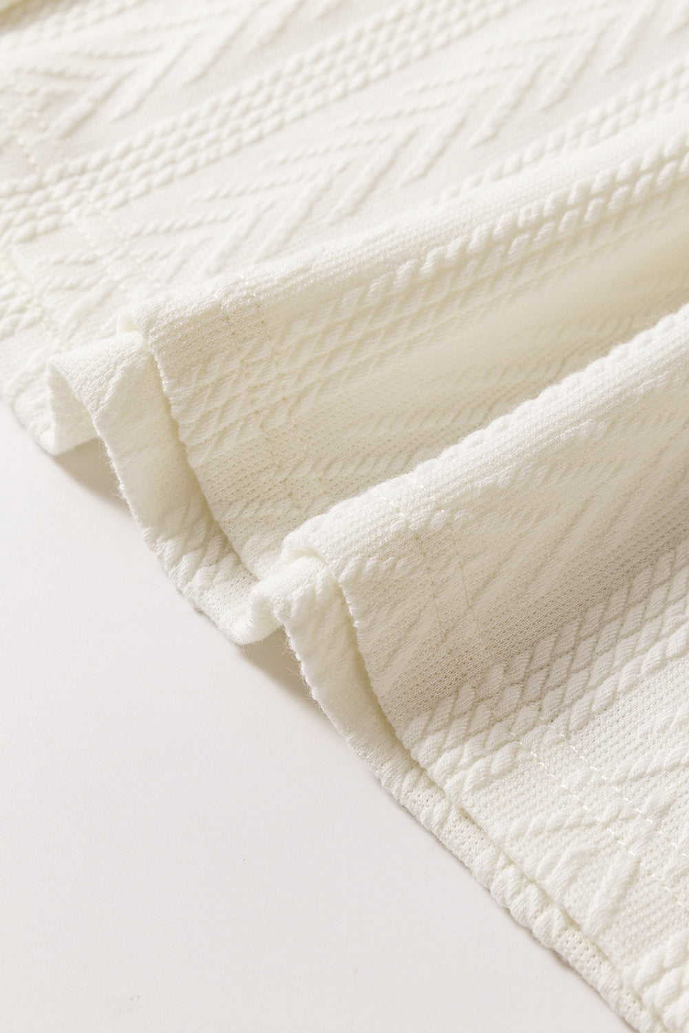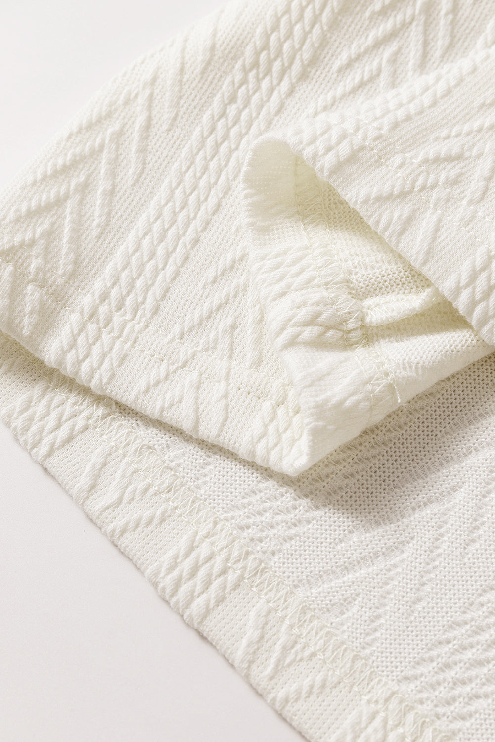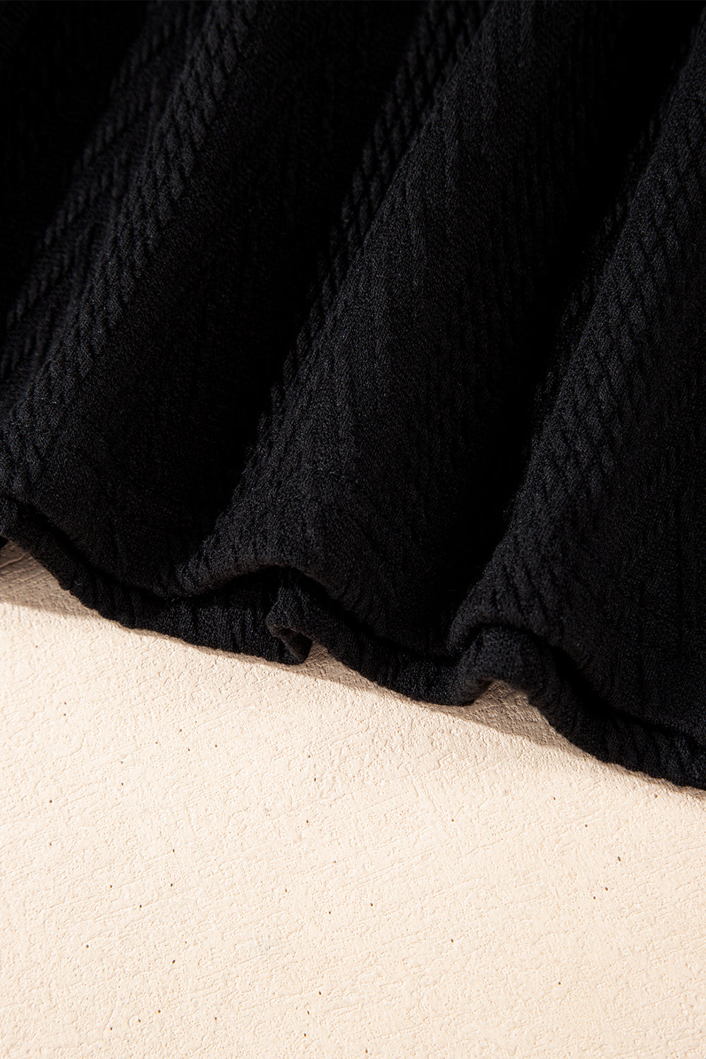 Floral Patchwork Textured Knit Drawstring V Neck Blouse