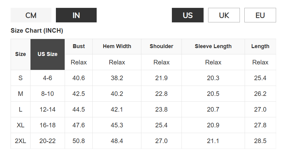 Size Chart (CM)