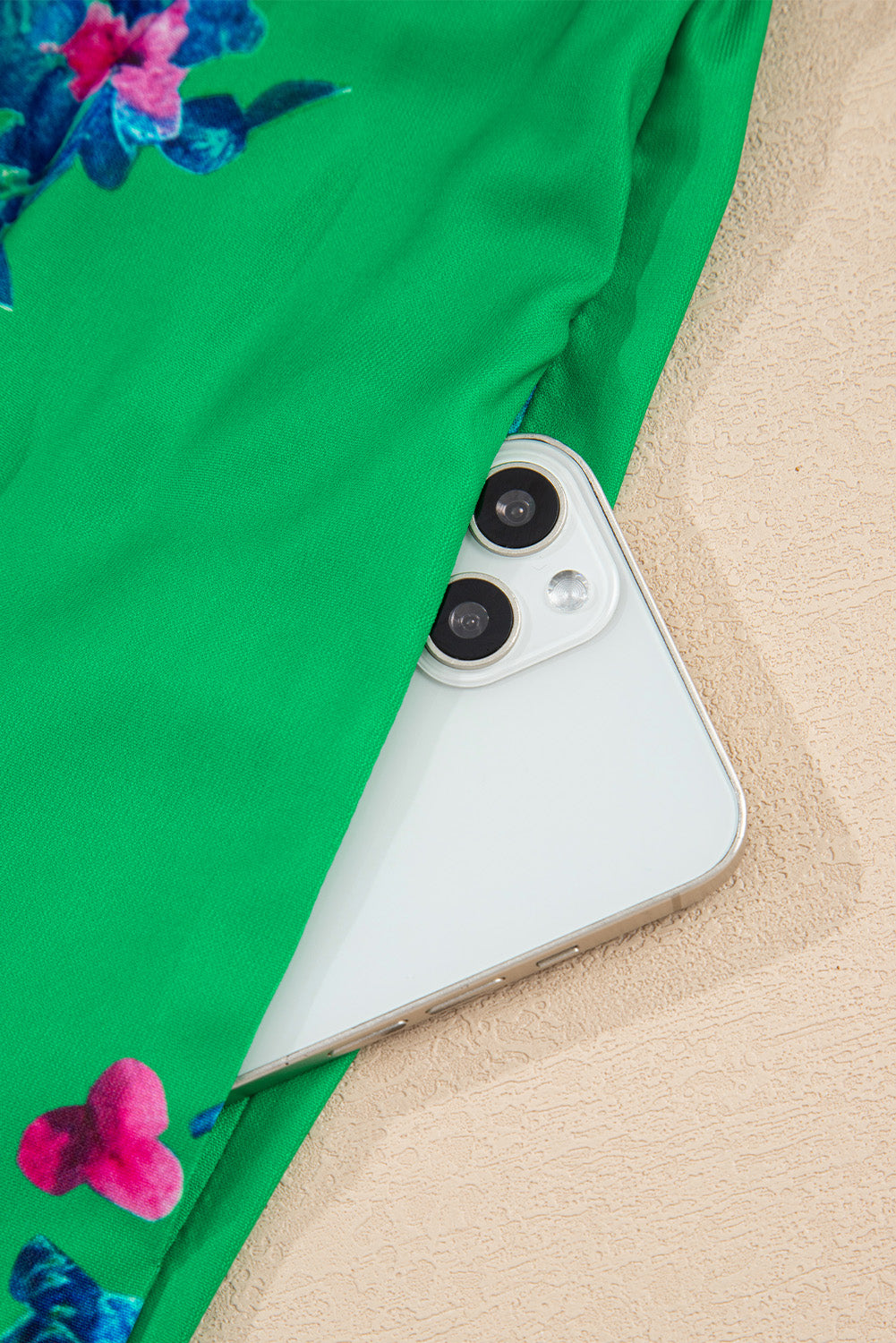 Green Floral Print Contrast Trim Knotted Straps Midi Dress