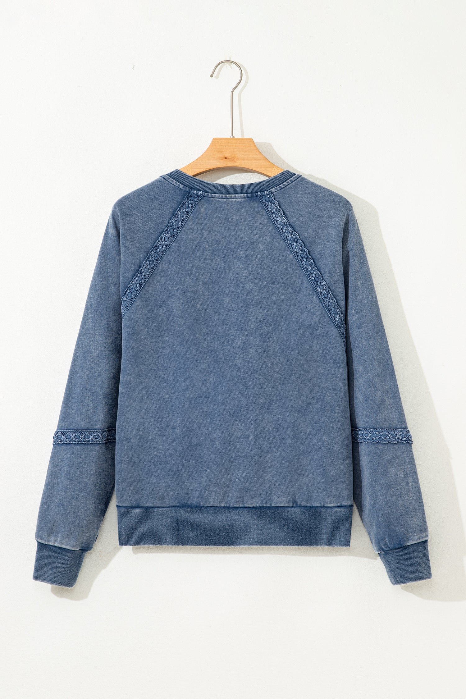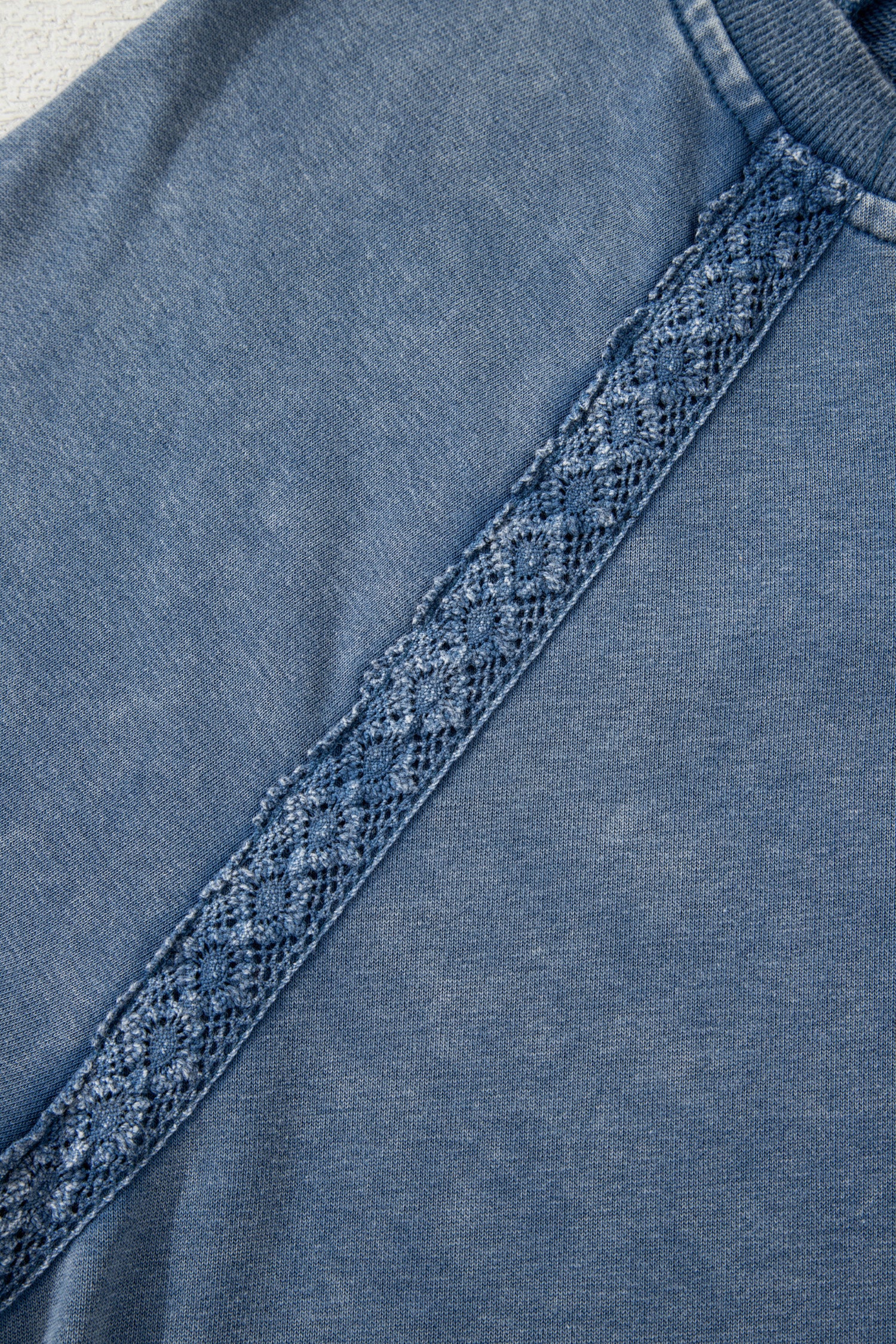 Lace Patchwork Detail Notched Neck Mineral Wash Baggy Sweatshirt