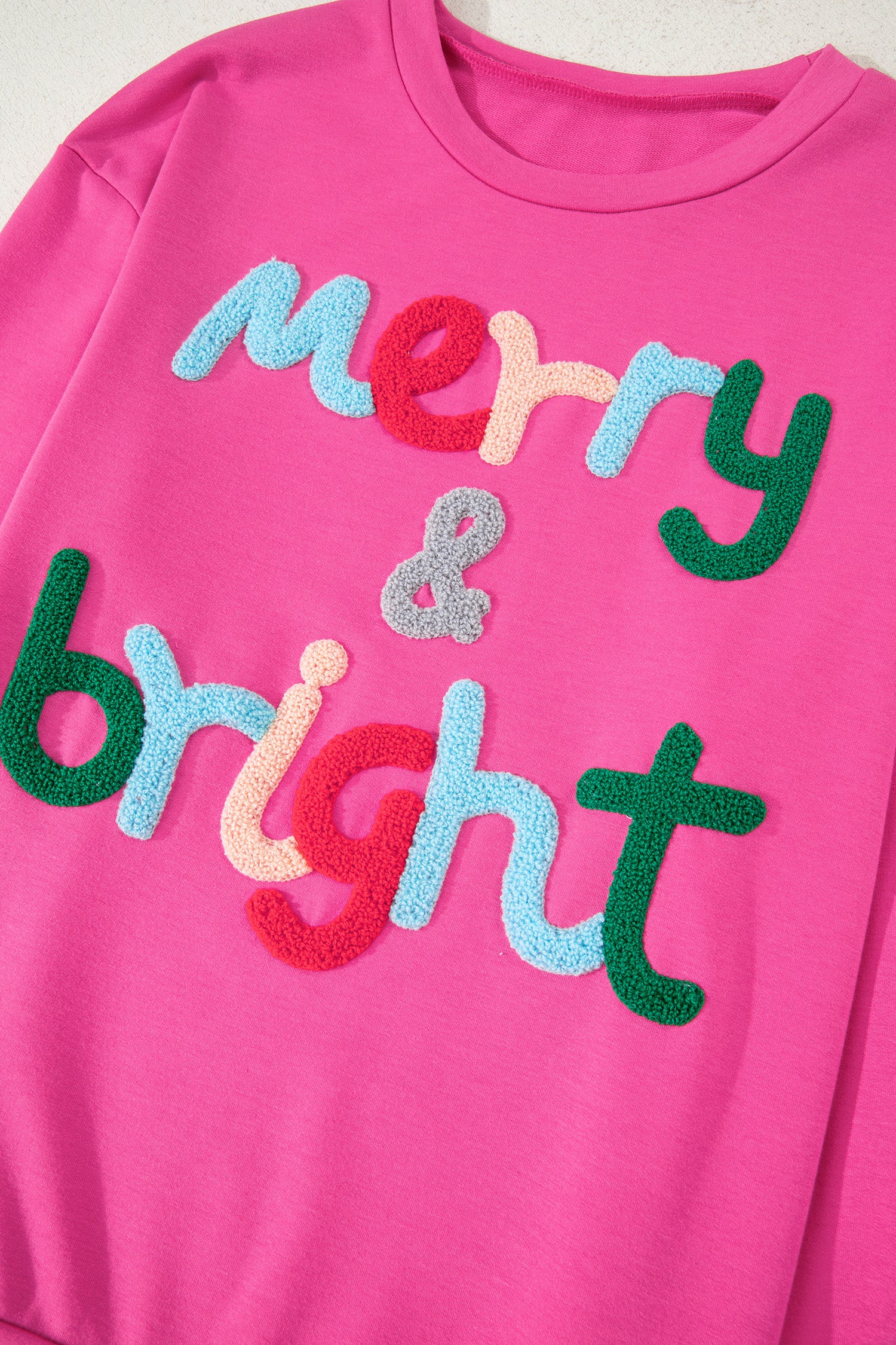 Rose Red Merry & Bright Christmas Letter Graphic Sweatshirt
