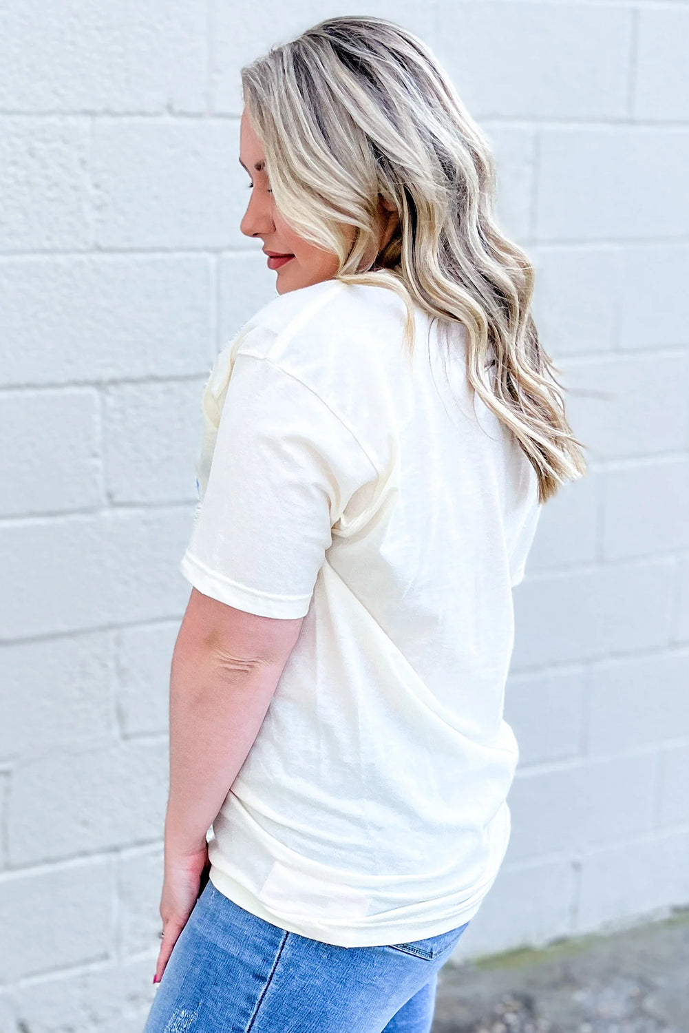 Sky Blue USA Graphic Crewneck Plus Size Patriotic Tee