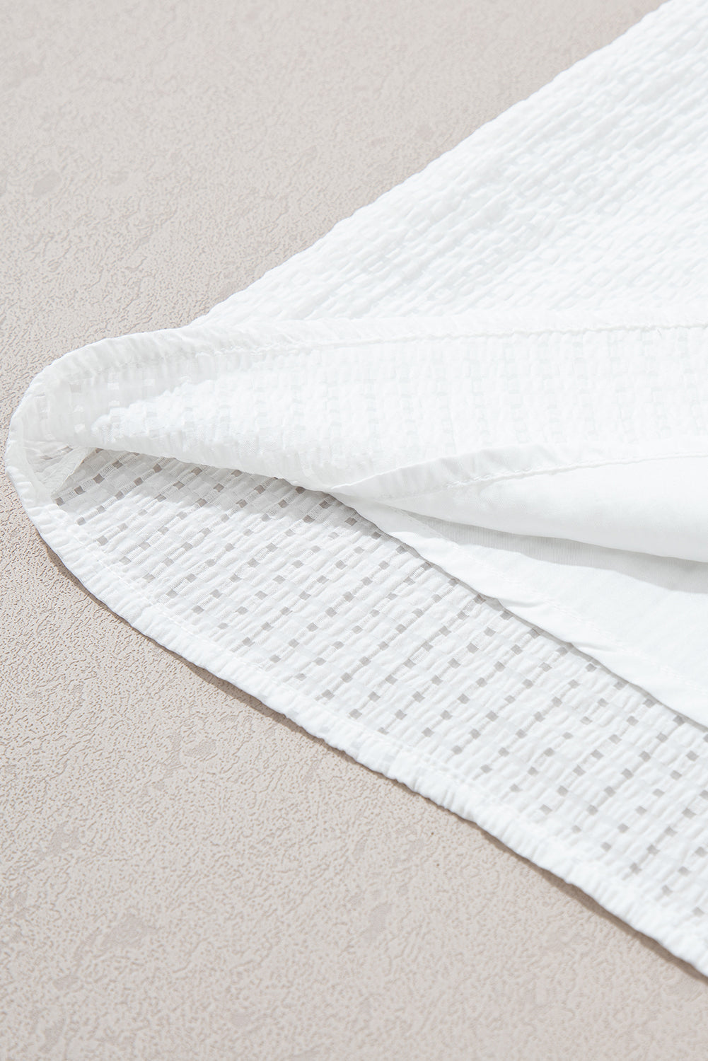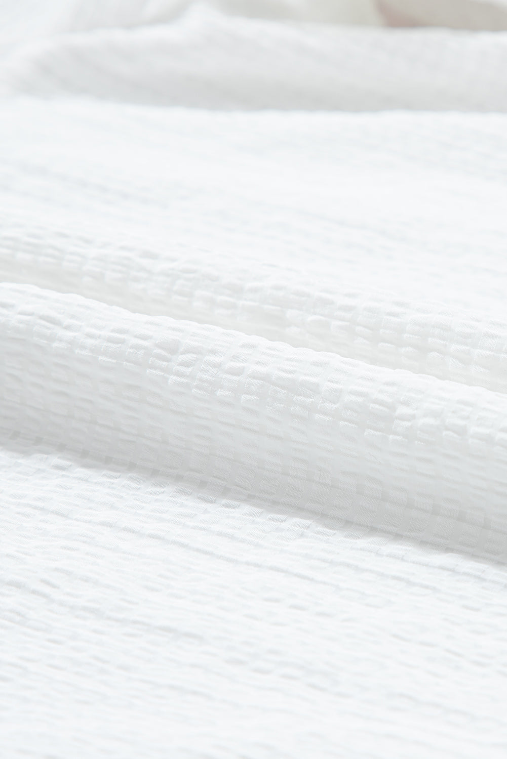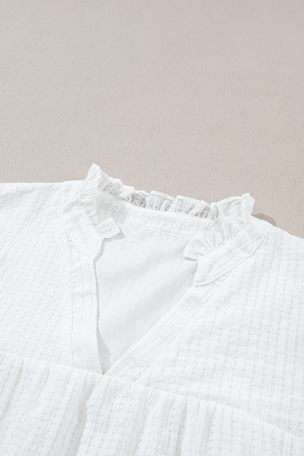 Solid Color Floral Embroidered Puff Sleeve Notched Neck Blouse