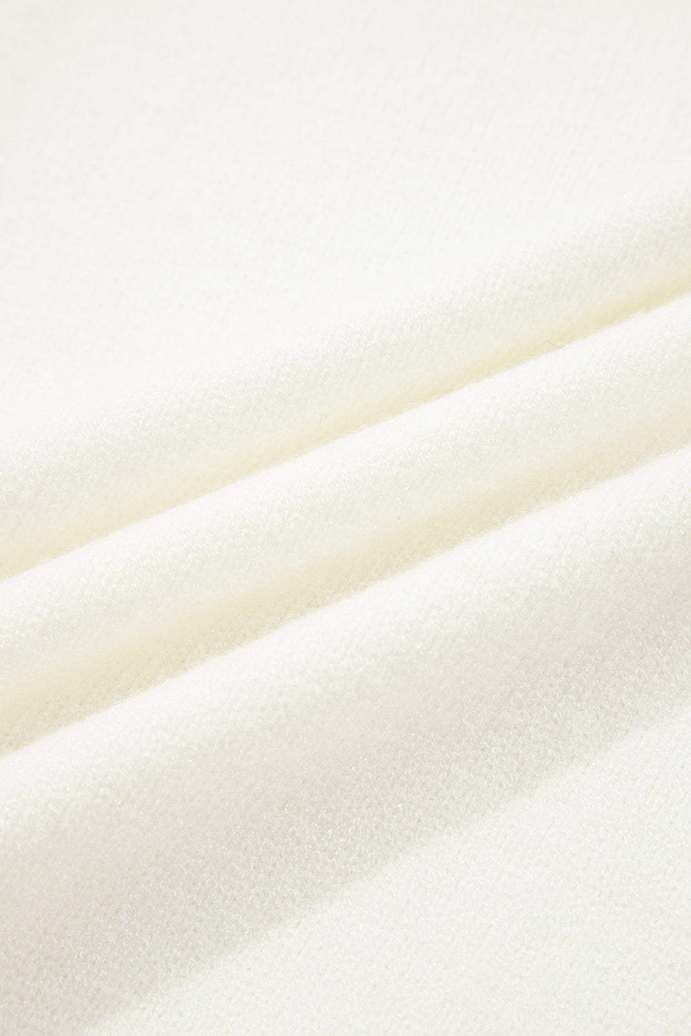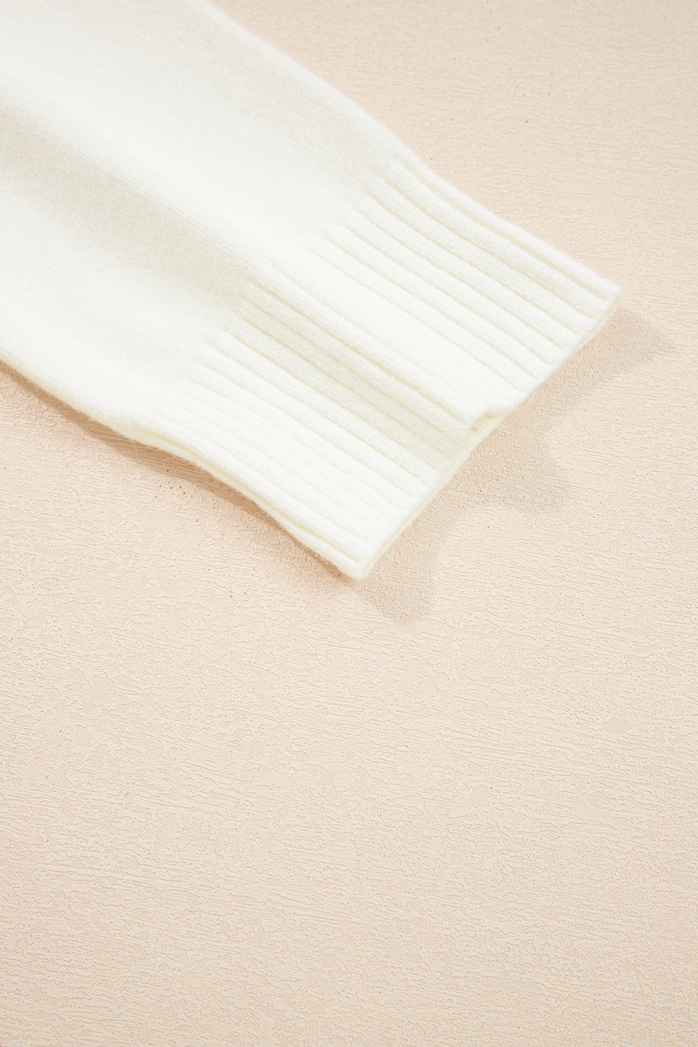 White Embroidered Flower Bouquet Ribbed Trim Loose Sweater
