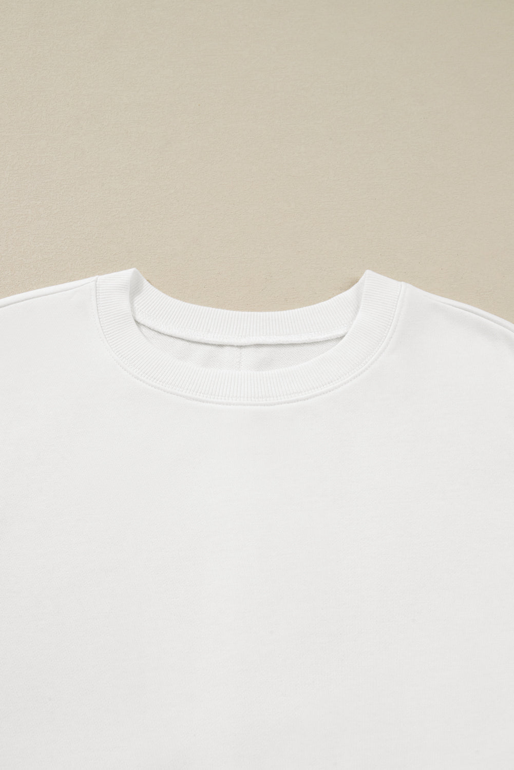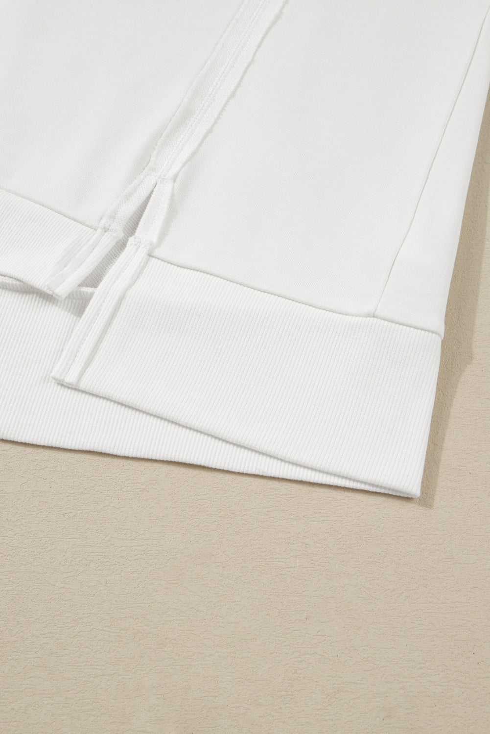 White Plus Size Exposed Seam Detail Contrast Dot Floral Patchwork Sleeve Sweatshirt