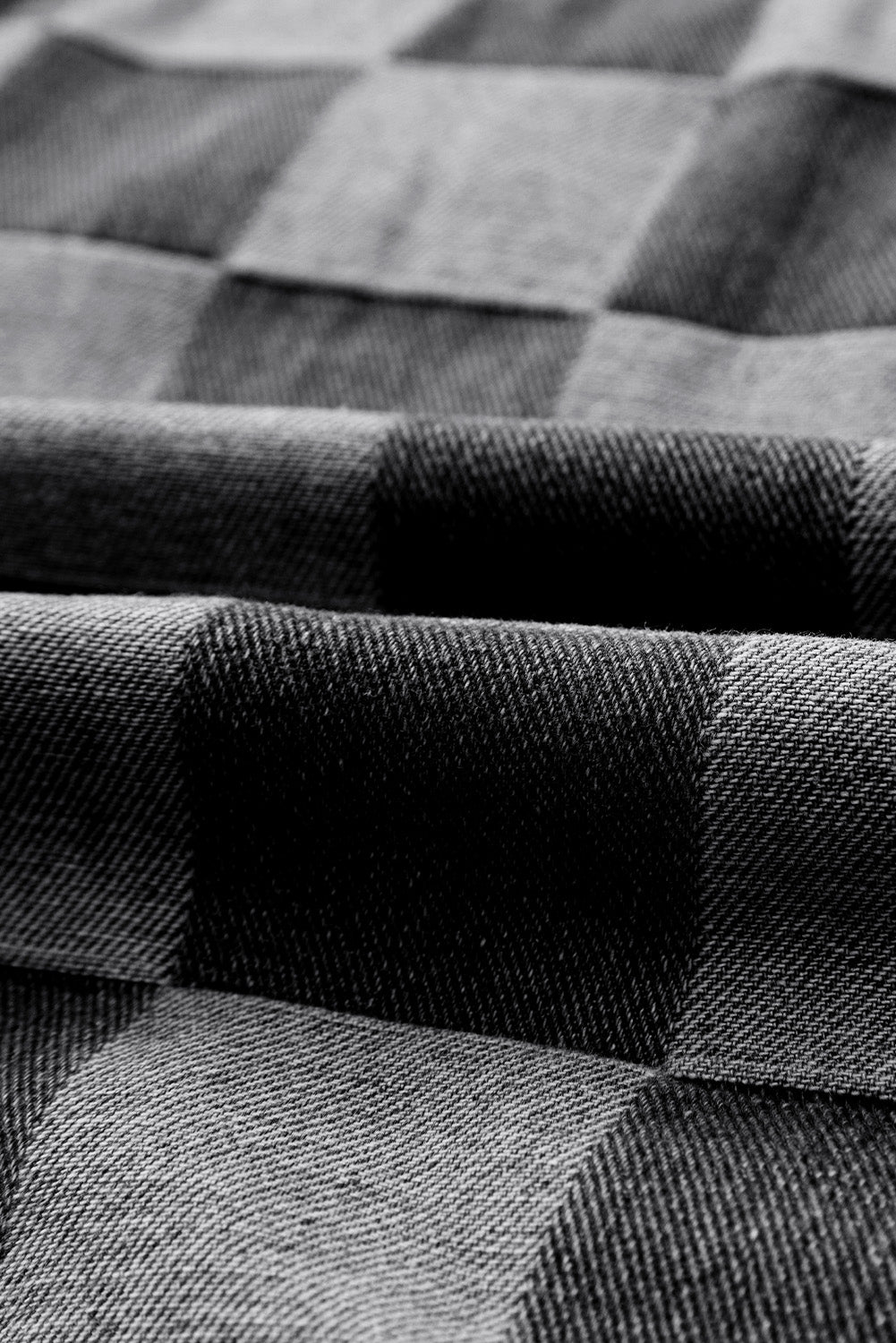 The two-tone checkered pattern adds a playful twist to the jacket.