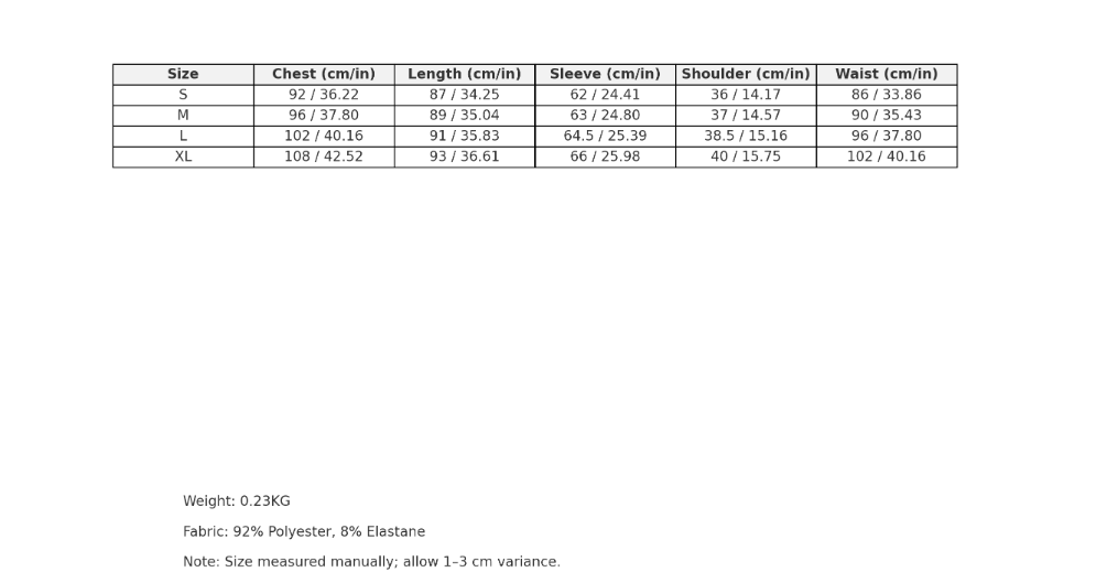 • Premium Fabric Blend – Crafted from soft polyester with added spandex, ensuring lightweight comfort, breathability, and gentle stretch.