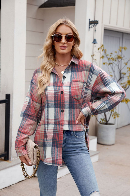 Black Brown Gray Checkered Print Drop Shoulder Round Neck Sweater