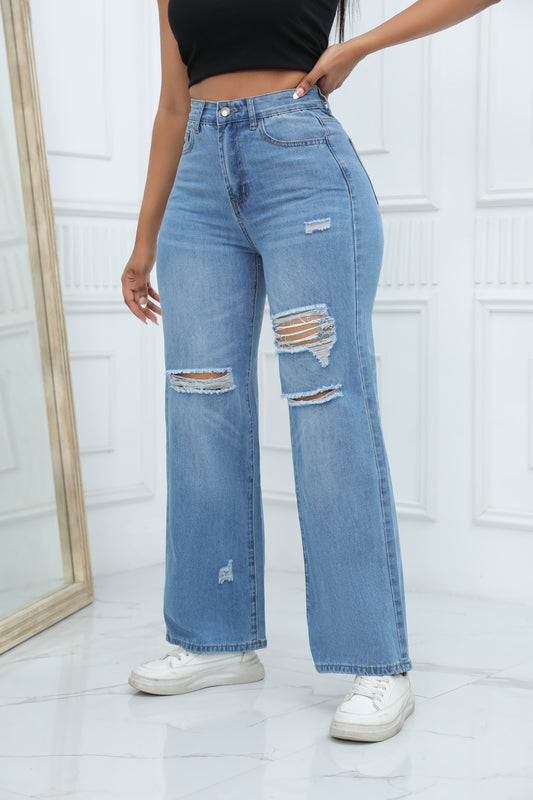 Distressed Mid Rise Straight Jeans – Game Day Style