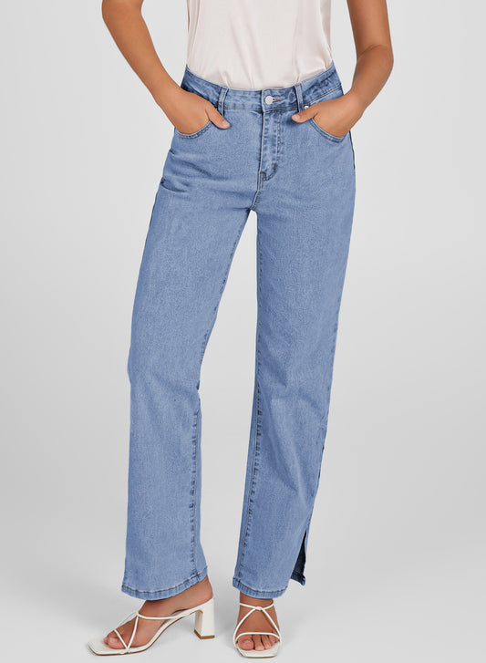 Beau Blue Casual Wide Slit Leg High Waist Loose Plus Size Jeans