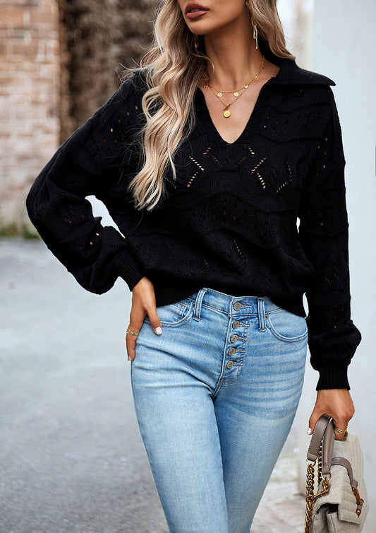 Black V-neck Knitted Sweater Top