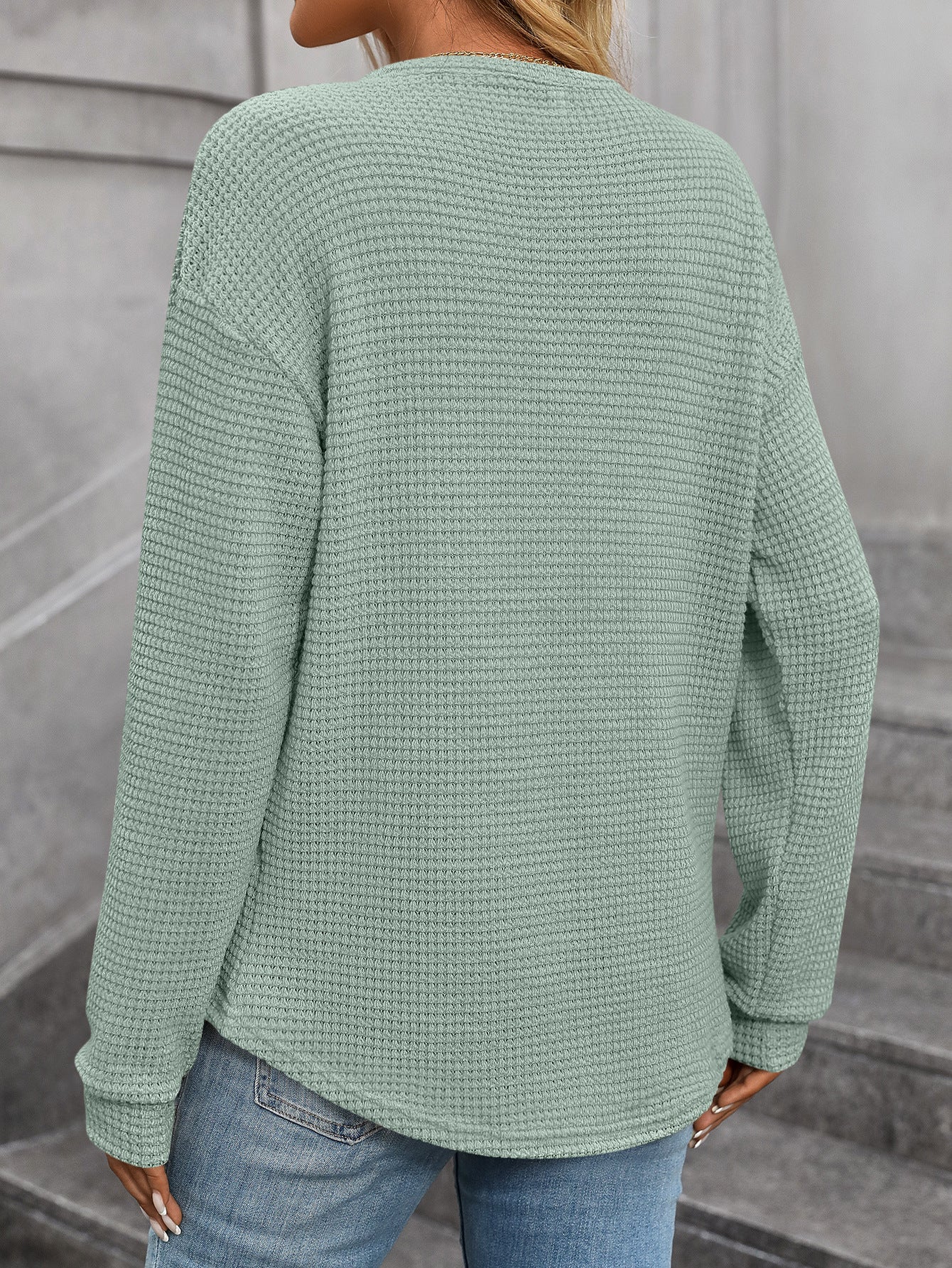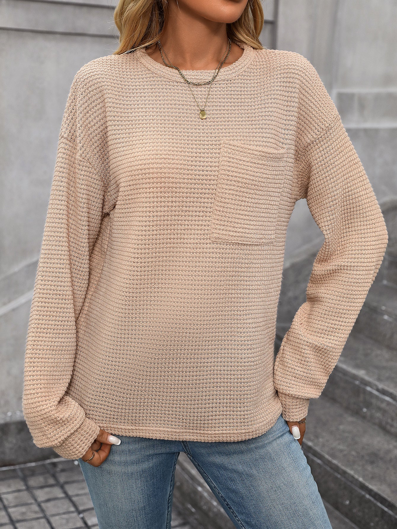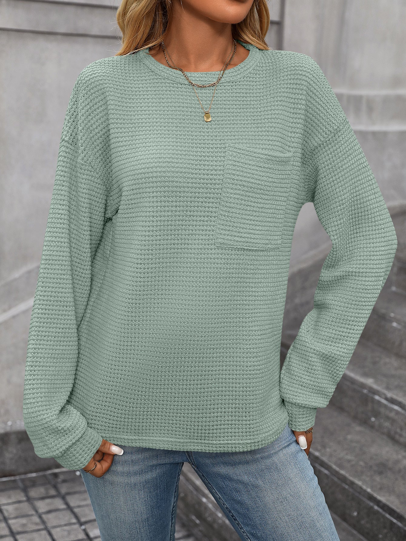 Waffle Solid Color Crew Neck Pocket Casual Loose T-Shirt
