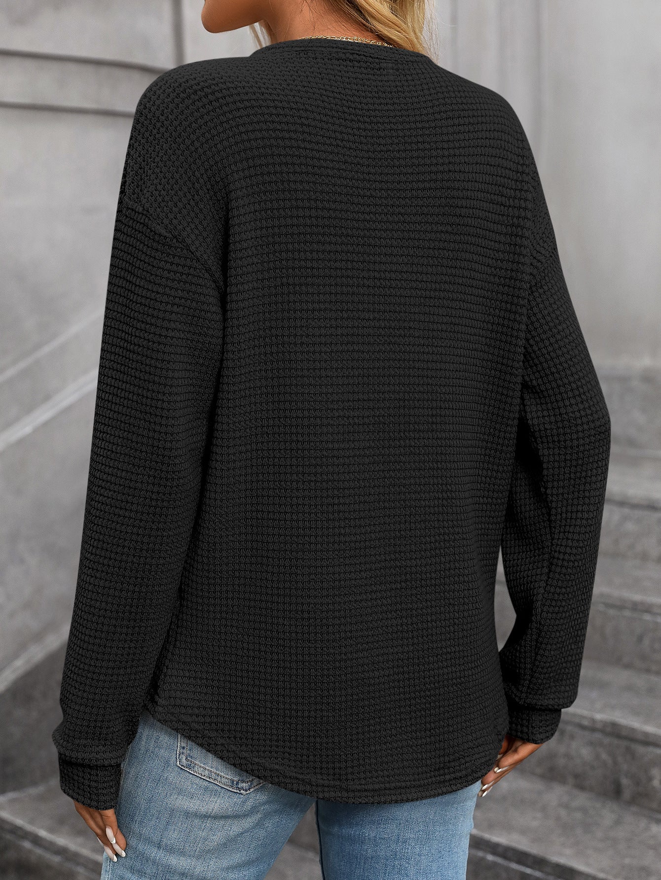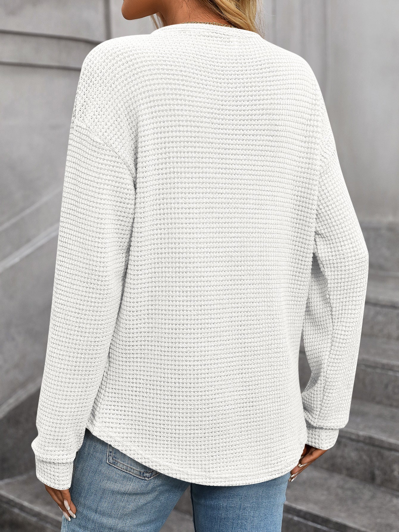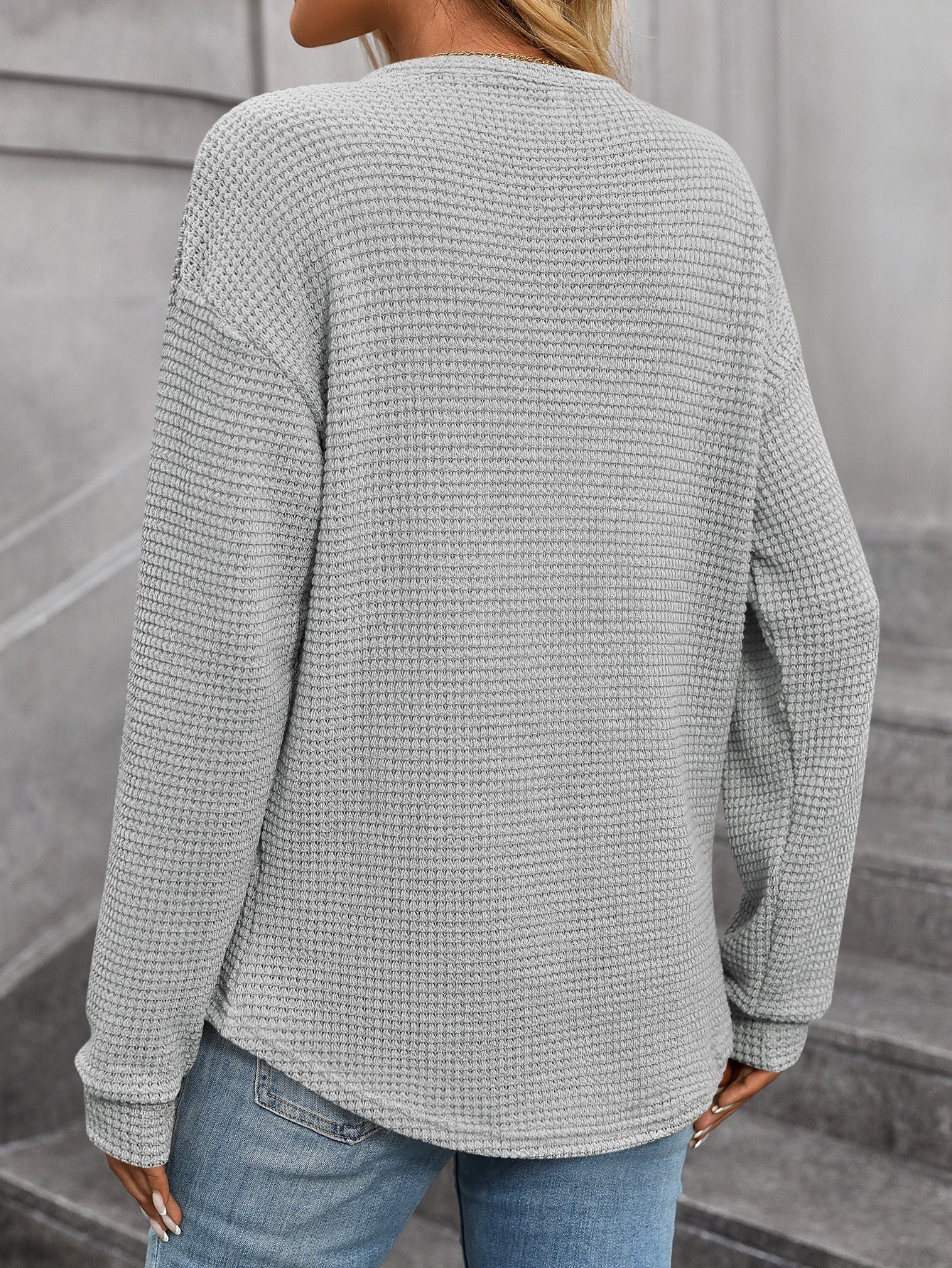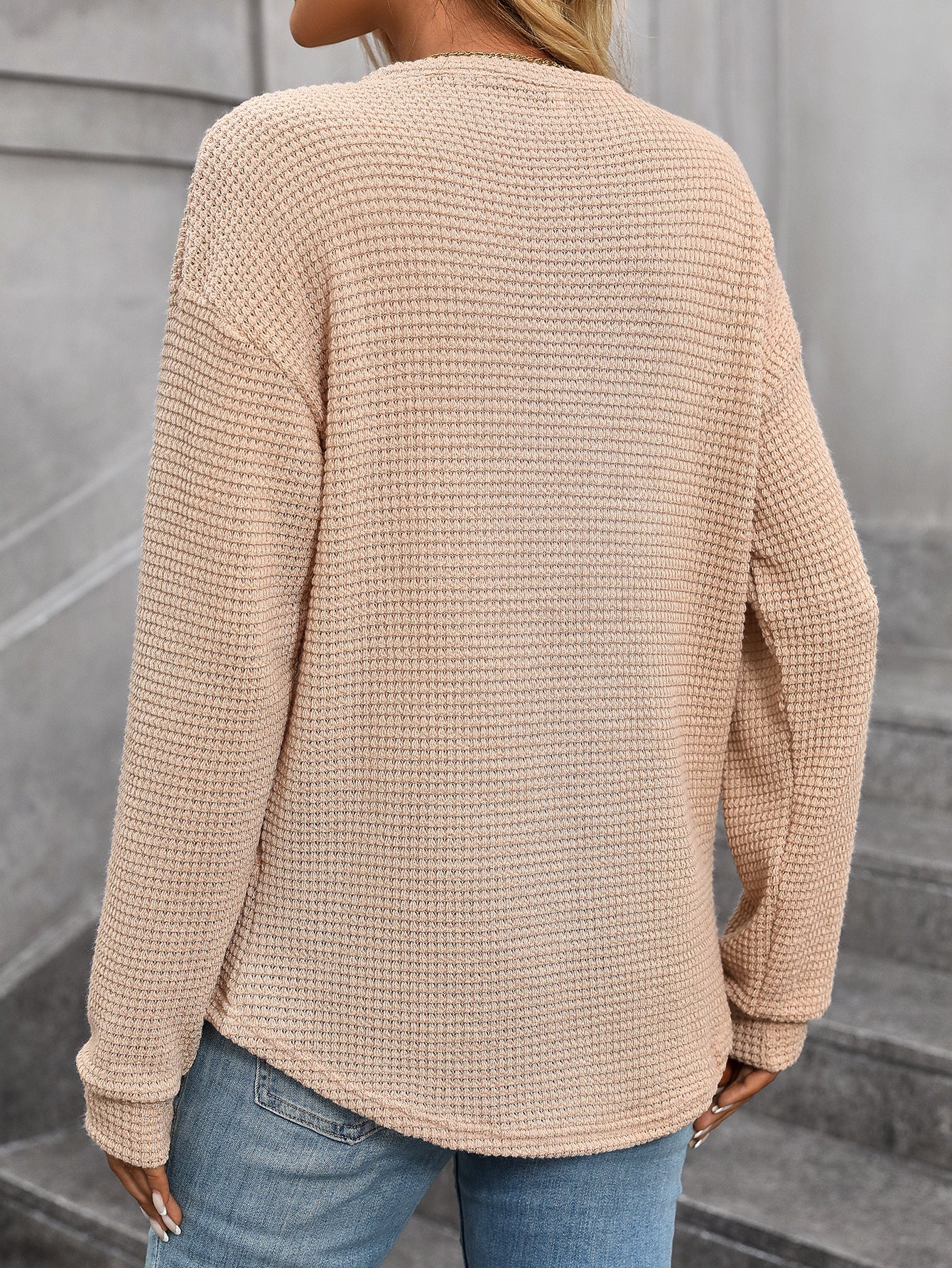 Waffle Solid Color Crew Neck Pocket Casual Loose T-Shirt