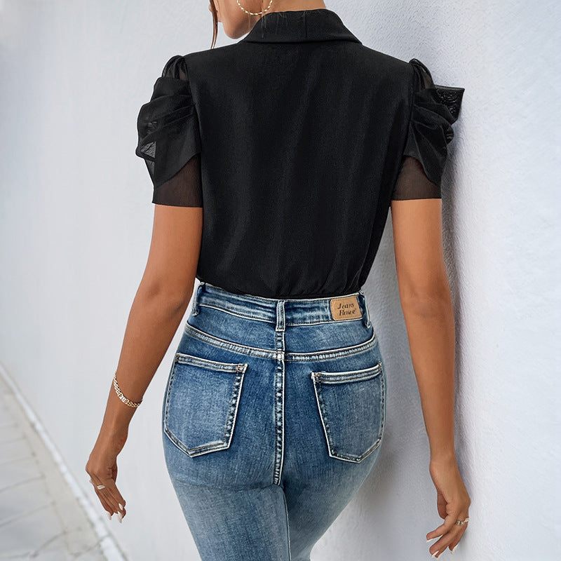 Elegant Puff Sleeves: Delicate mesh puff sleeves bring a touch of sophistication, making this bodysuit versatile from work to weekend.