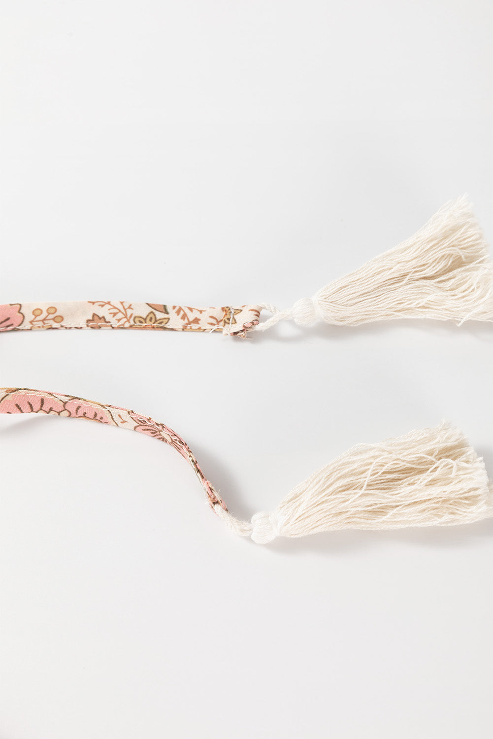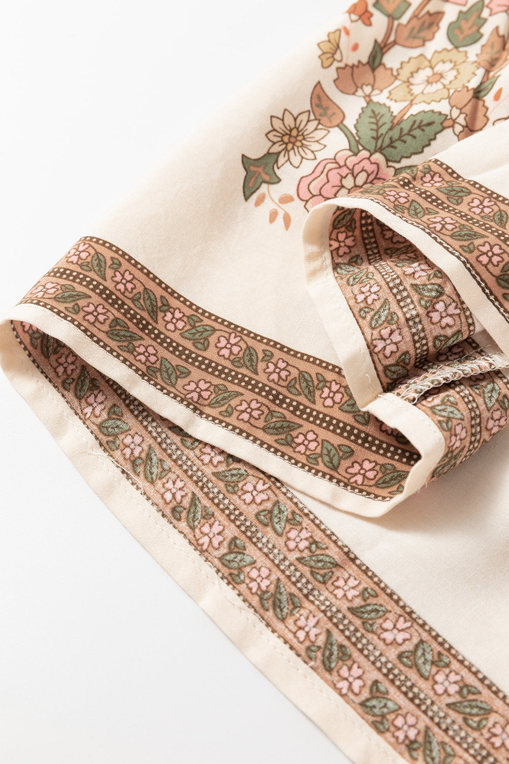 Apricot Floral Print Tassel Drawstring V Neck Loose Mini Dress