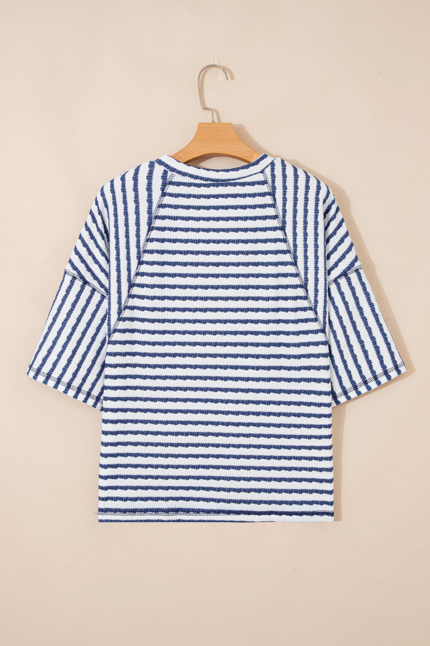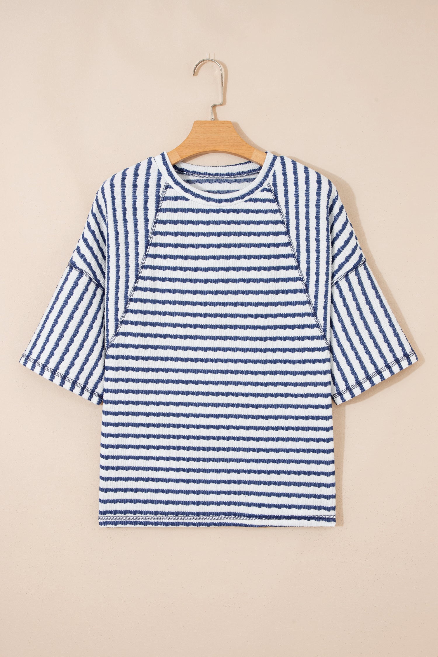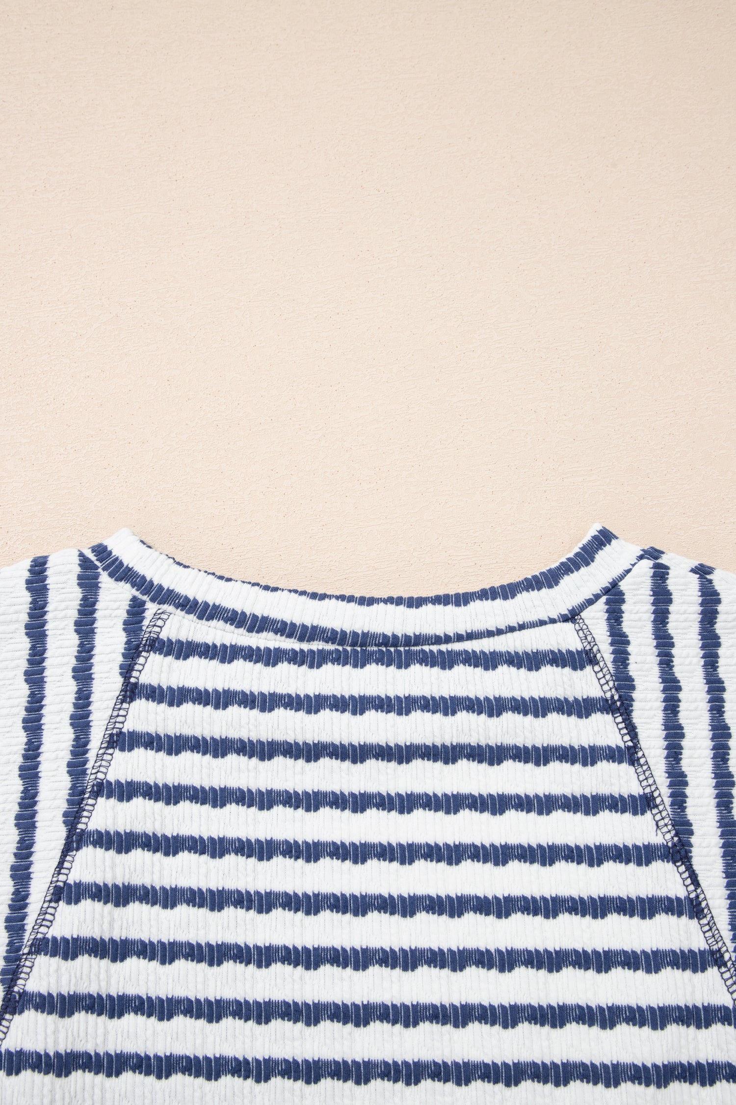 Apricot Stripe Textured Knit Split Hem Half Sleeve Loose Top