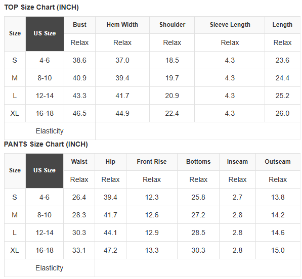 PANTS Size Chart (INCH)