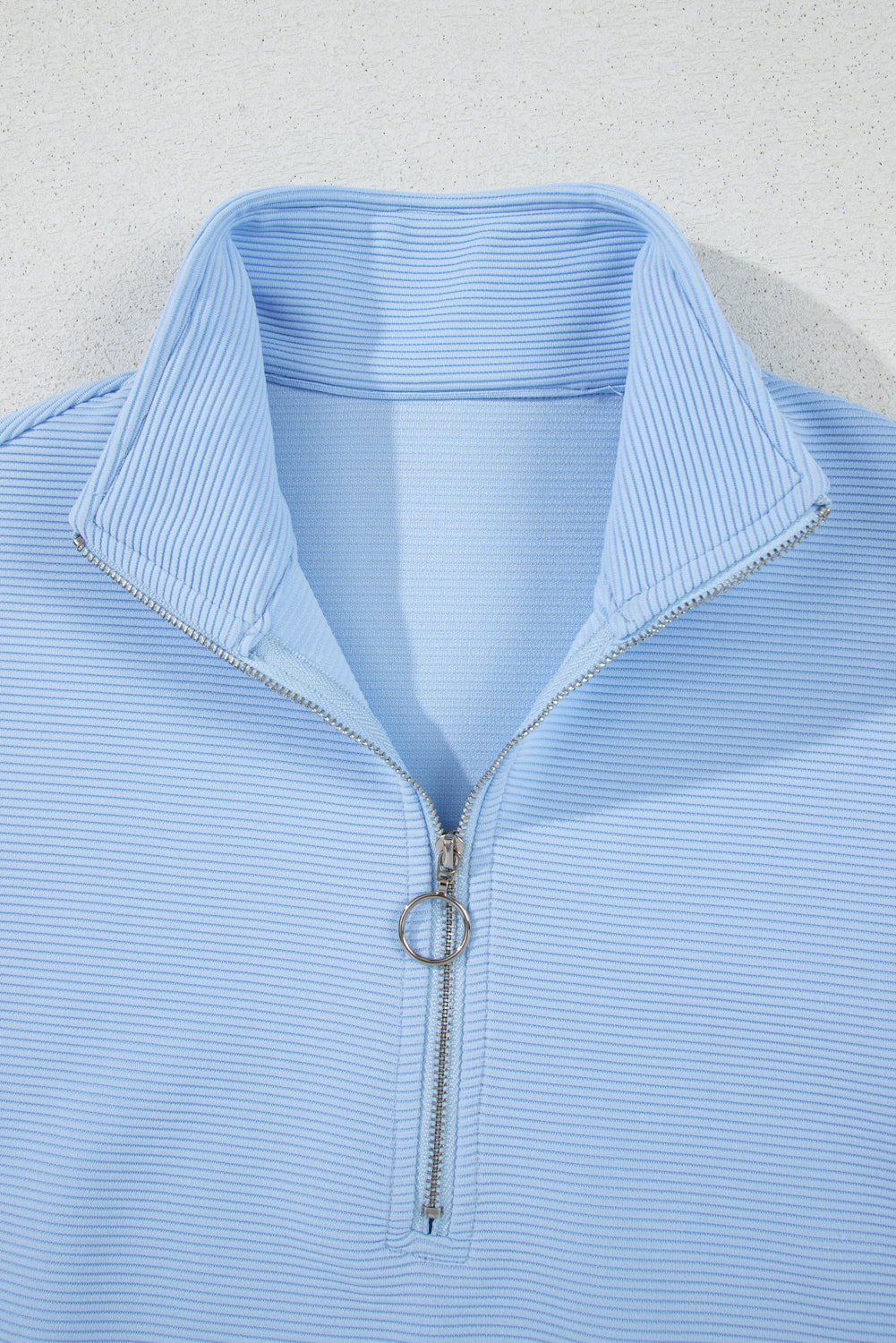 - Ribbed texture adds depth to this half-zip top.