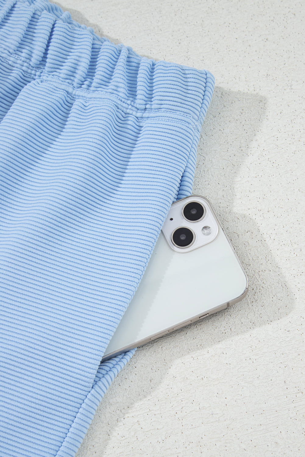 Beau Blue Ribbed Texture Half Zip Ruffled Short Sleeve Top and Shorts Set
