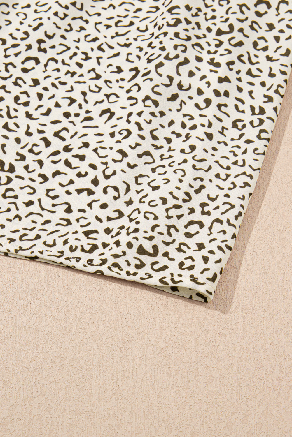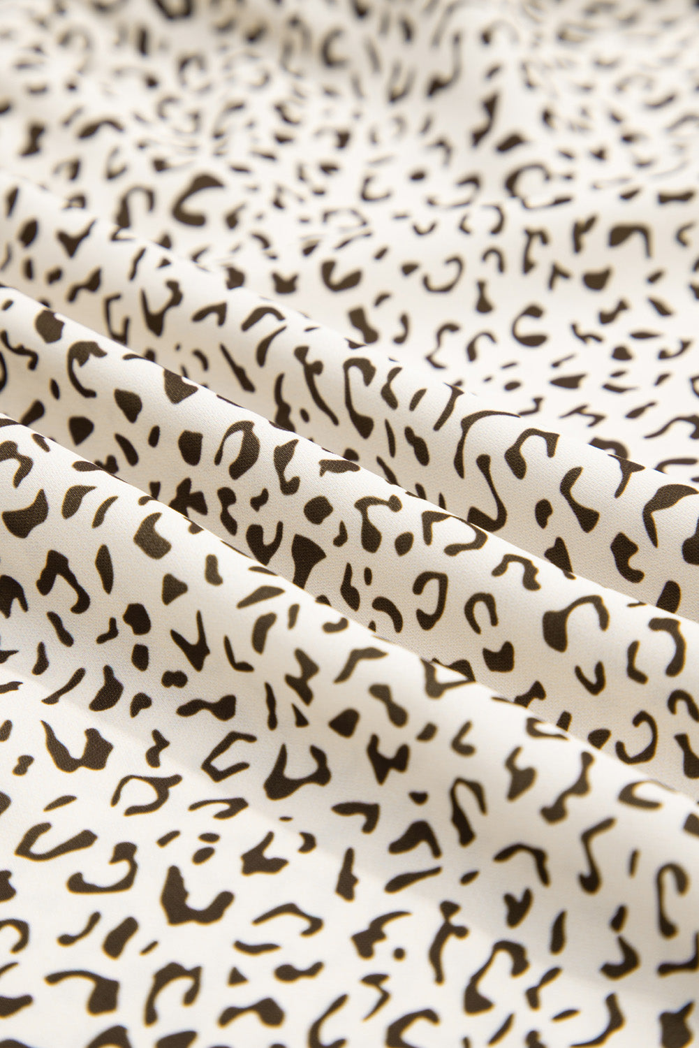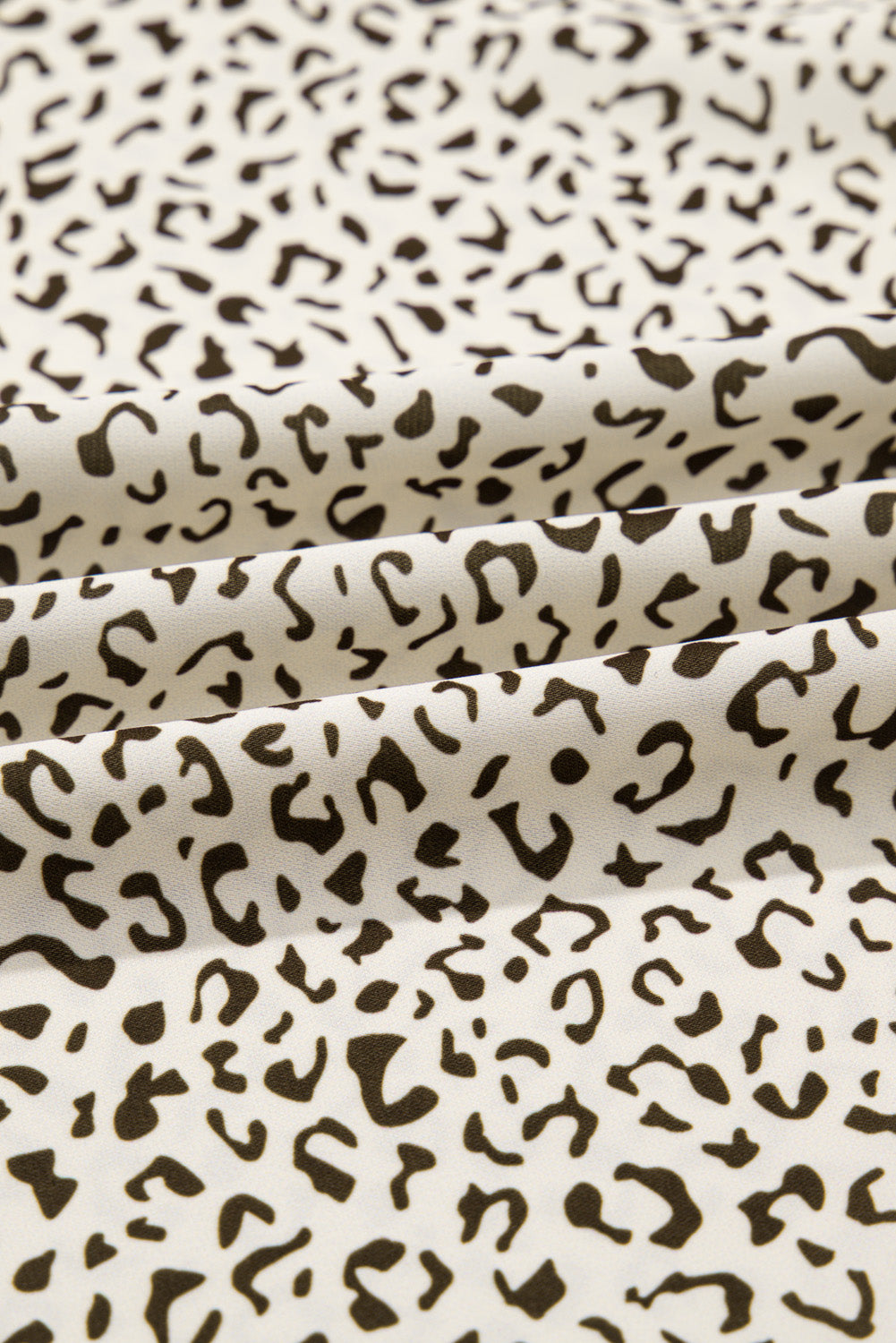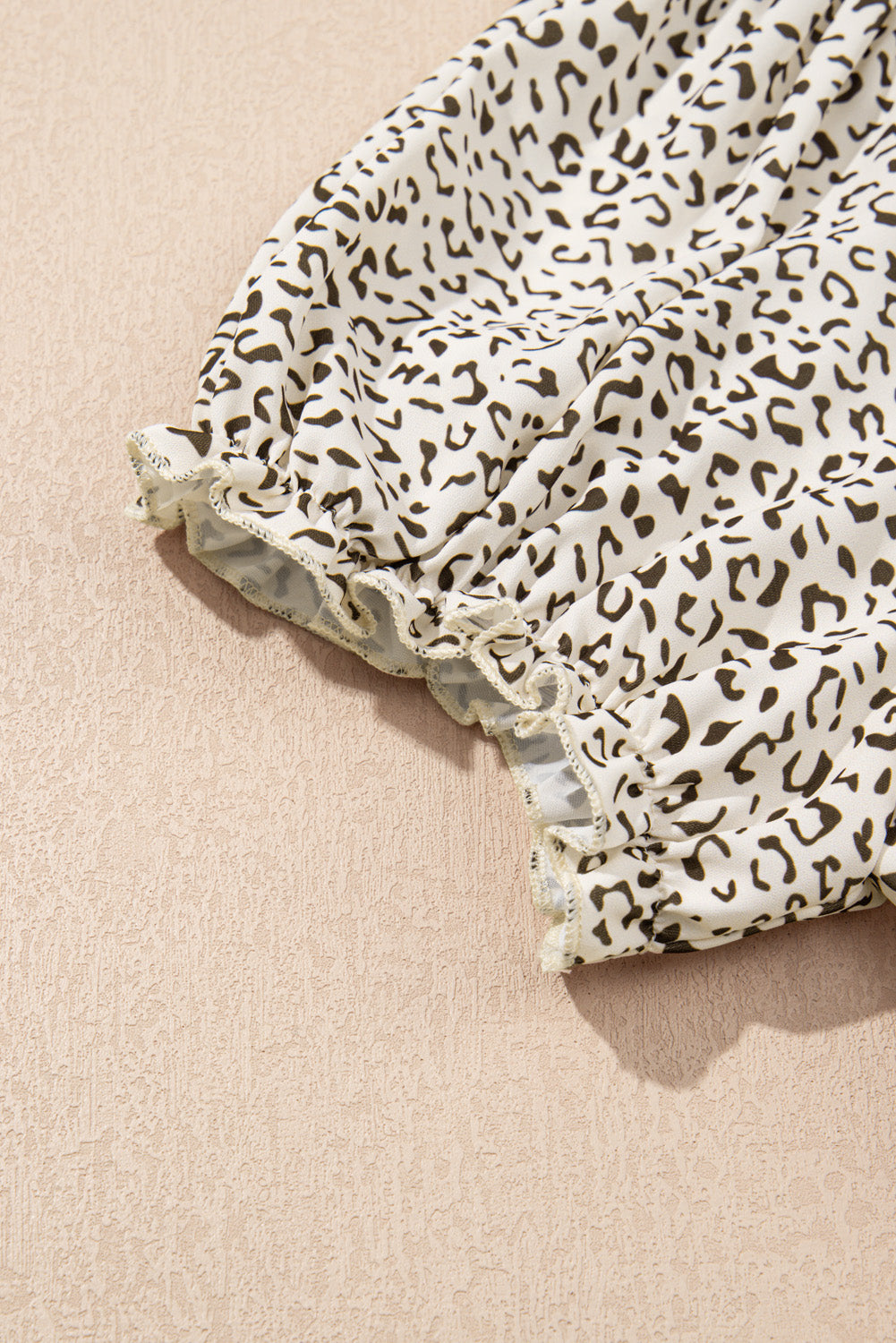 Beige Plus Size Leopard Print Frill Trim Short Sleeve Flared Dress