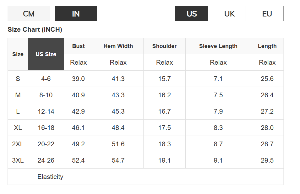Size Chart (CM)