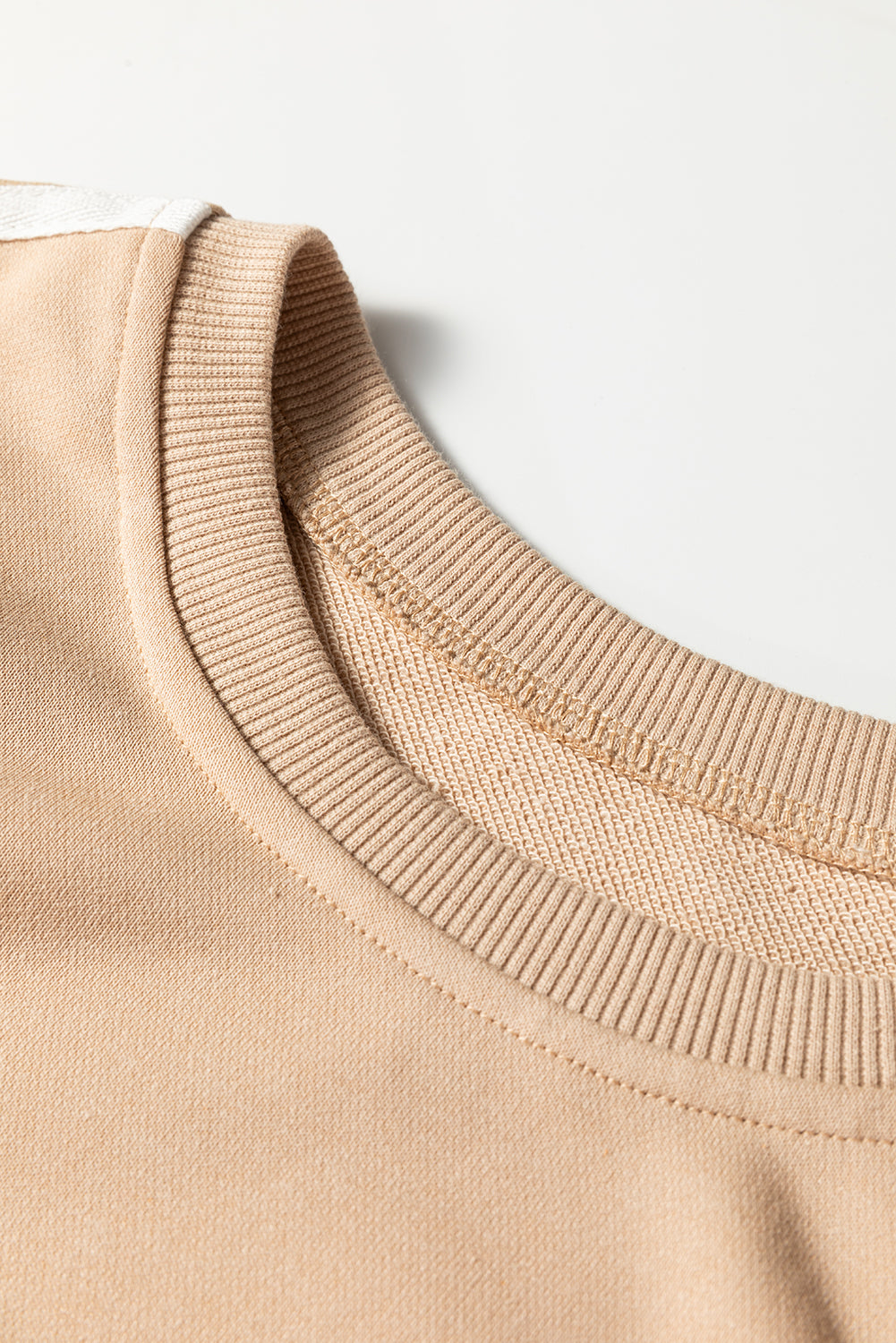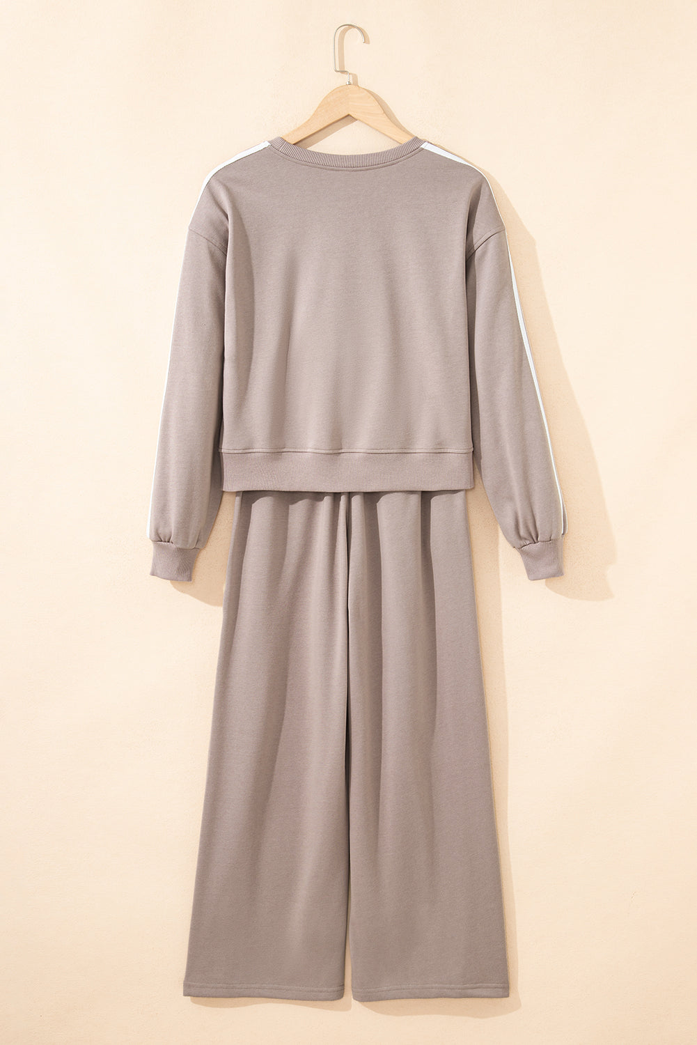 Black Varsity Striped Detail Crewneck Pullover Elastic Sweatpants 2pcs Outfit