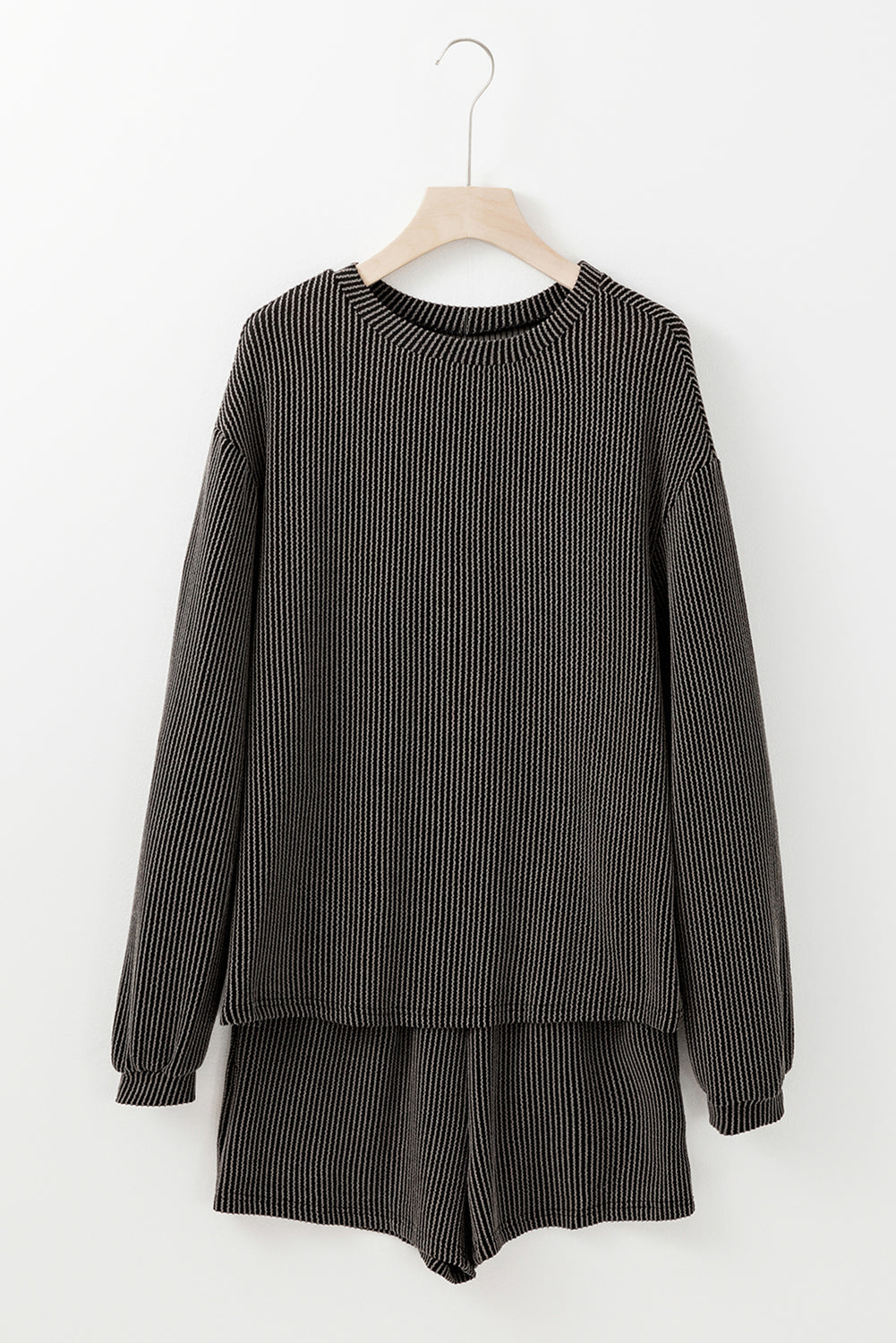 Carbon Grey Twisted Ribbed Sequin Holly Candy Cane Long Sleeve Top and Shorts 2pcs Outfit