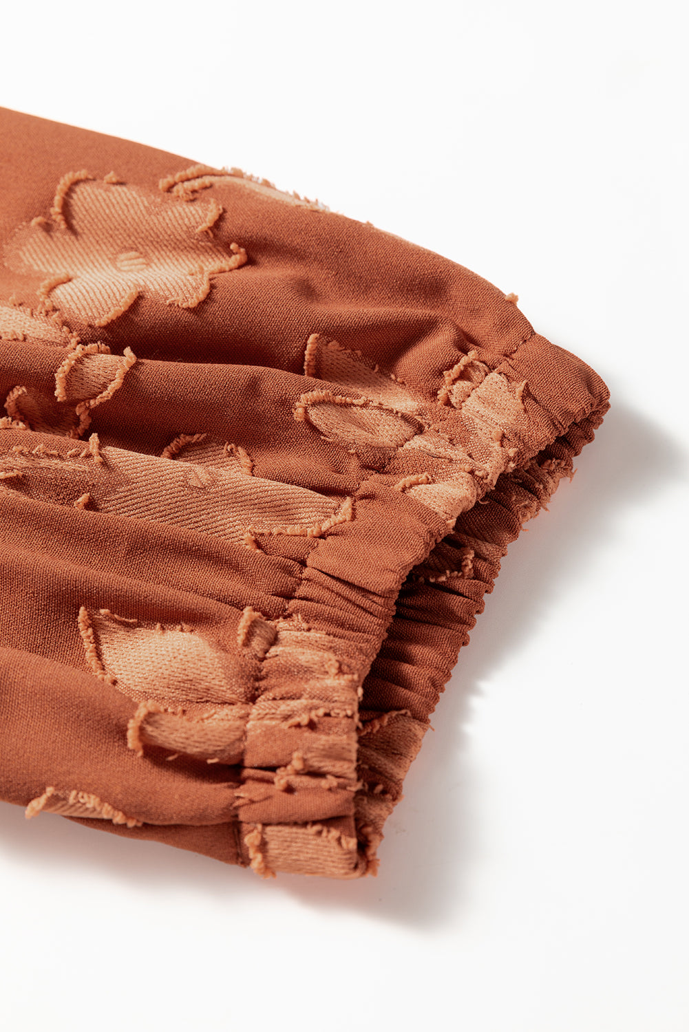 Cinnamon Plus Size Textured 3D Flower Pattern Ruffle Hem 3/4 Sleeve Long Dress