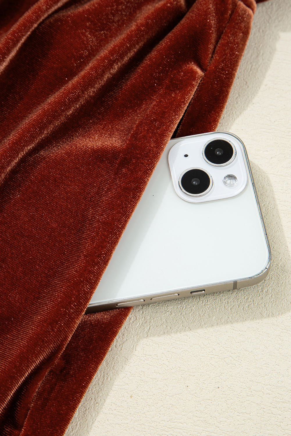 Clay Elastic V Neck Puff Sleeve Short Velvet Dress