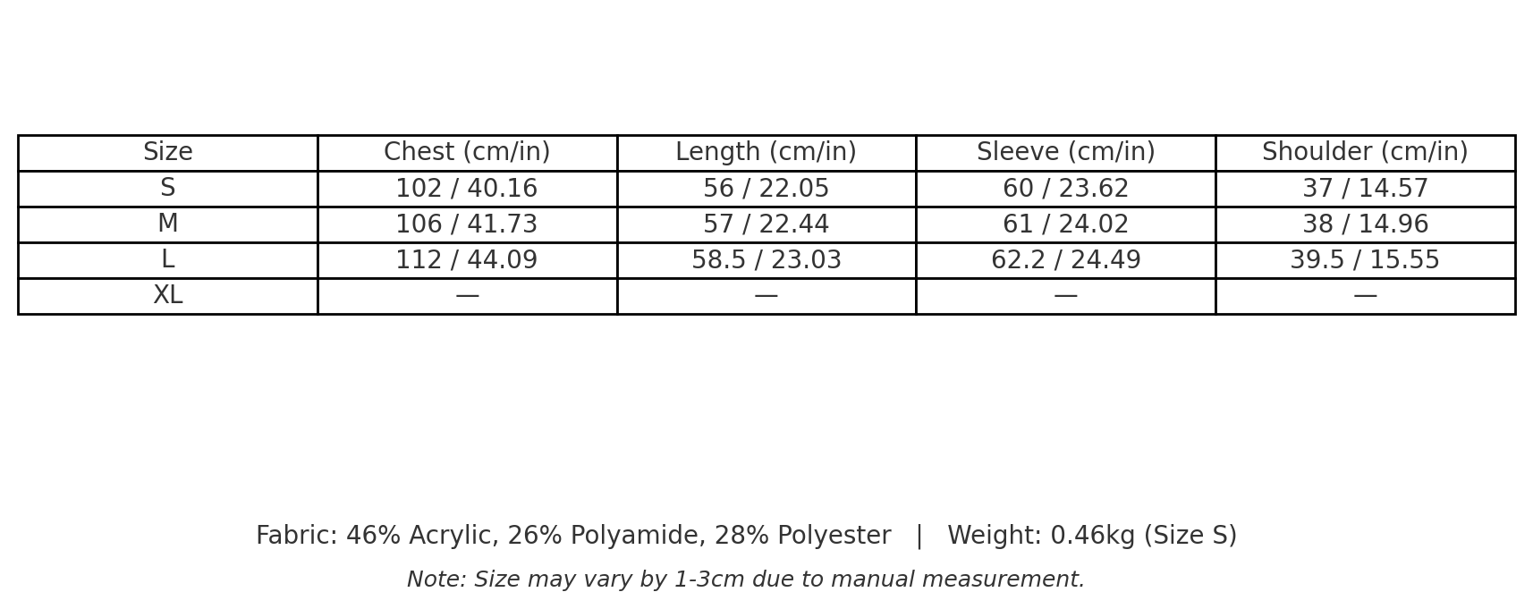 Soft Knit Fabric – Made with a cozy acrylic blend, this sweater provides warmth, comfort, and durability for fall and winter seasons.
