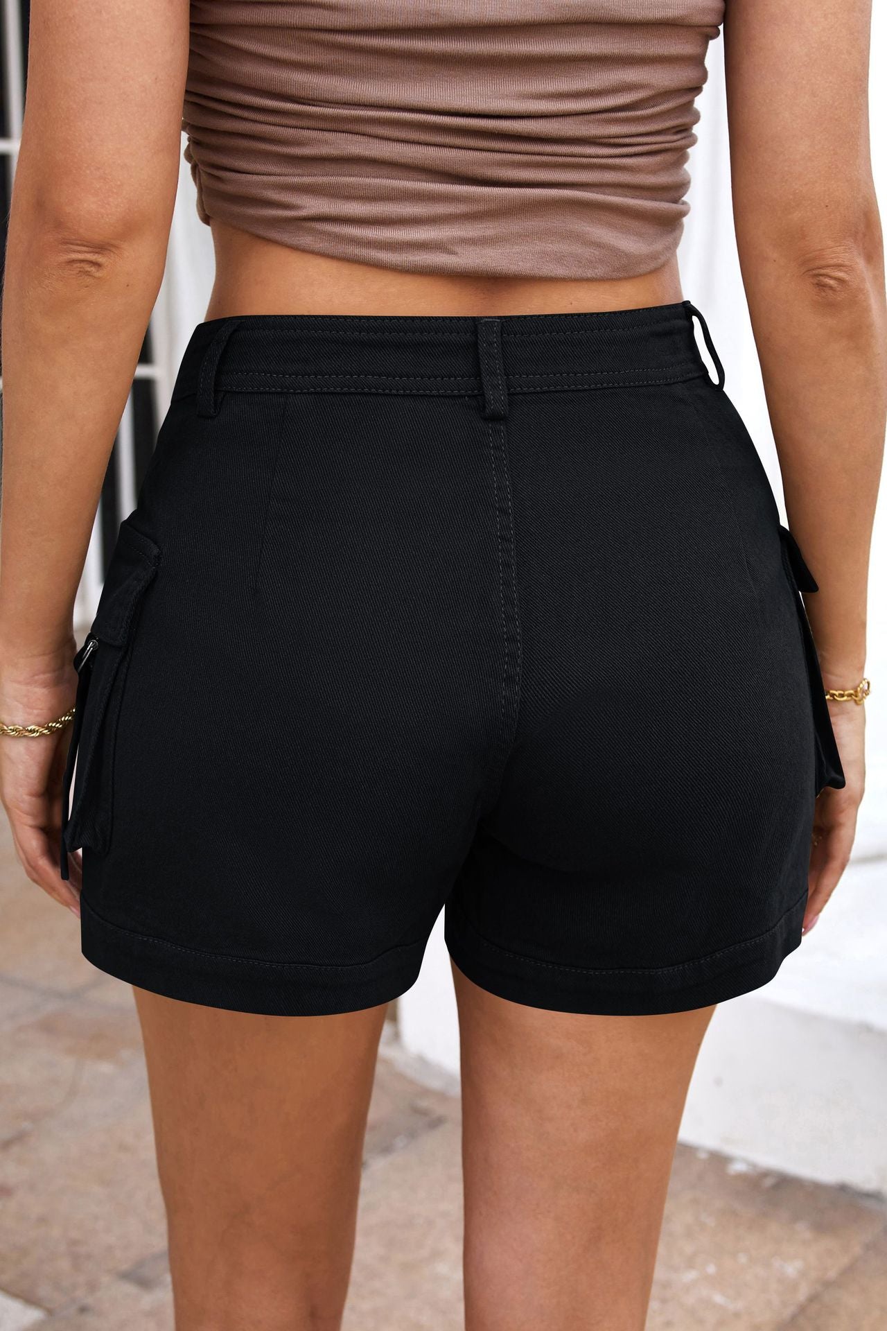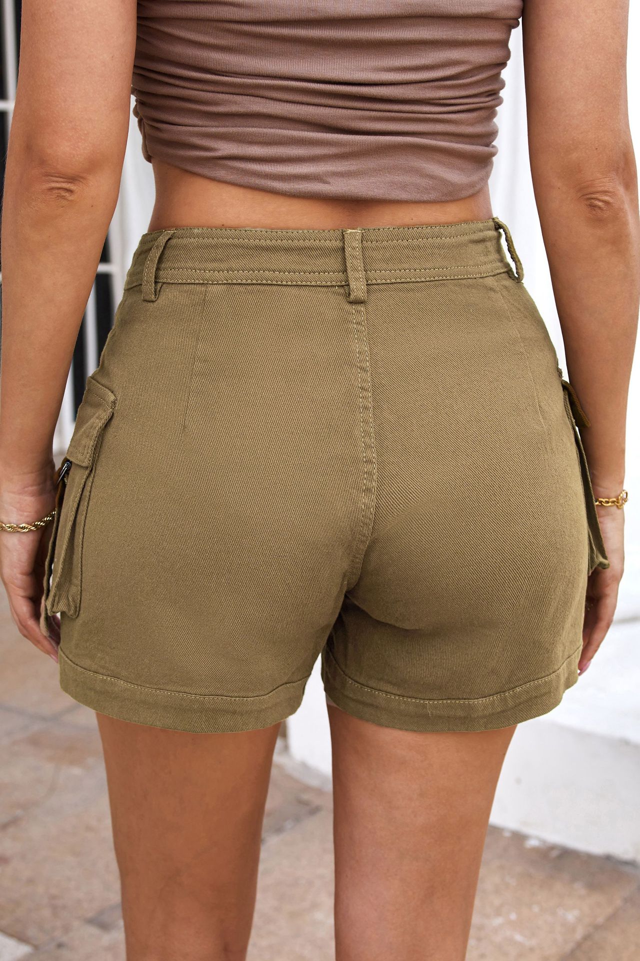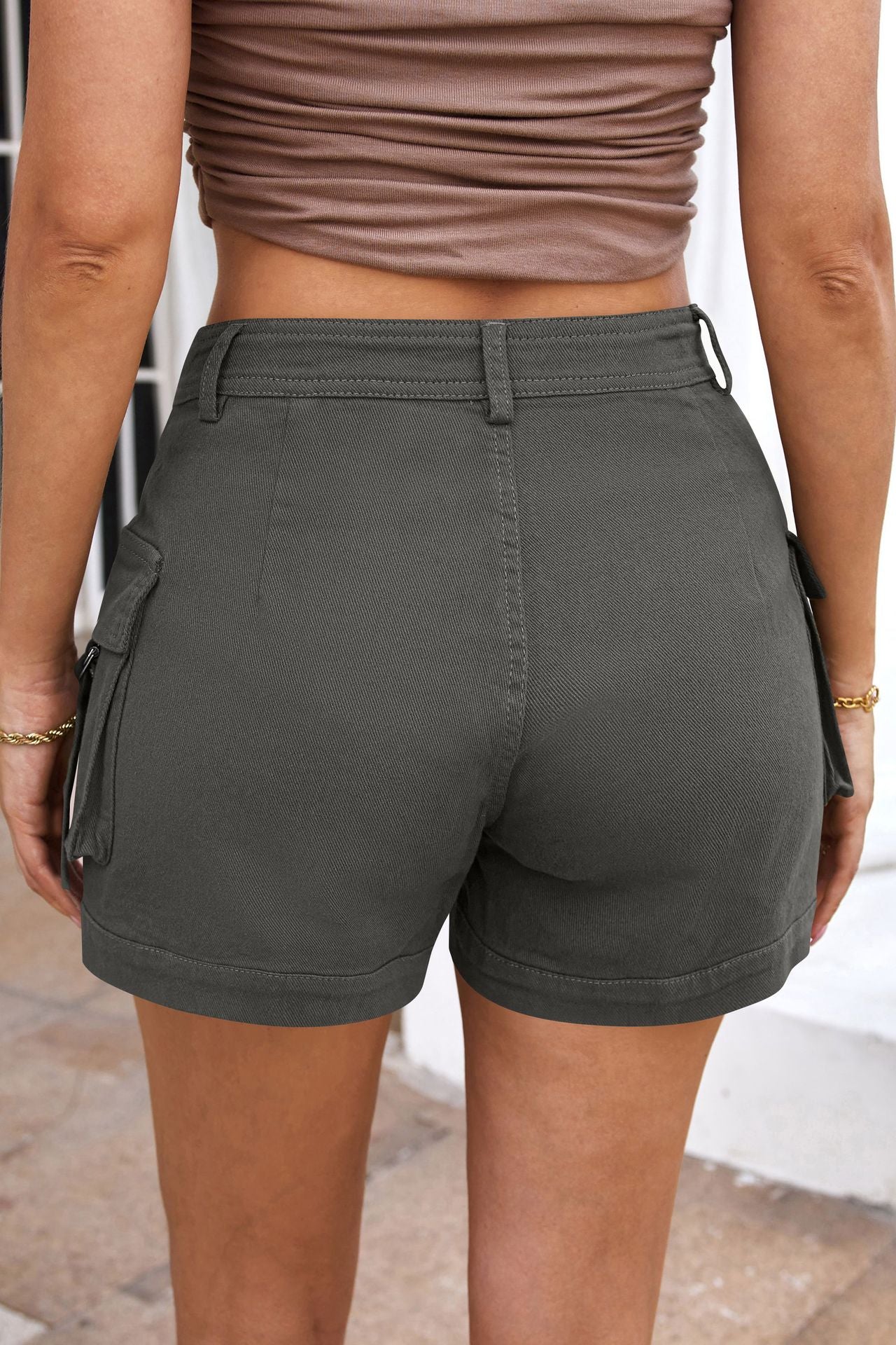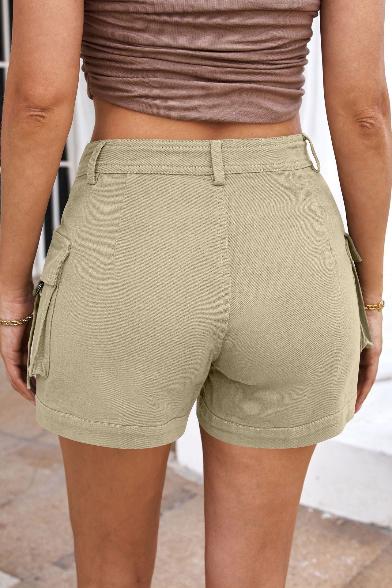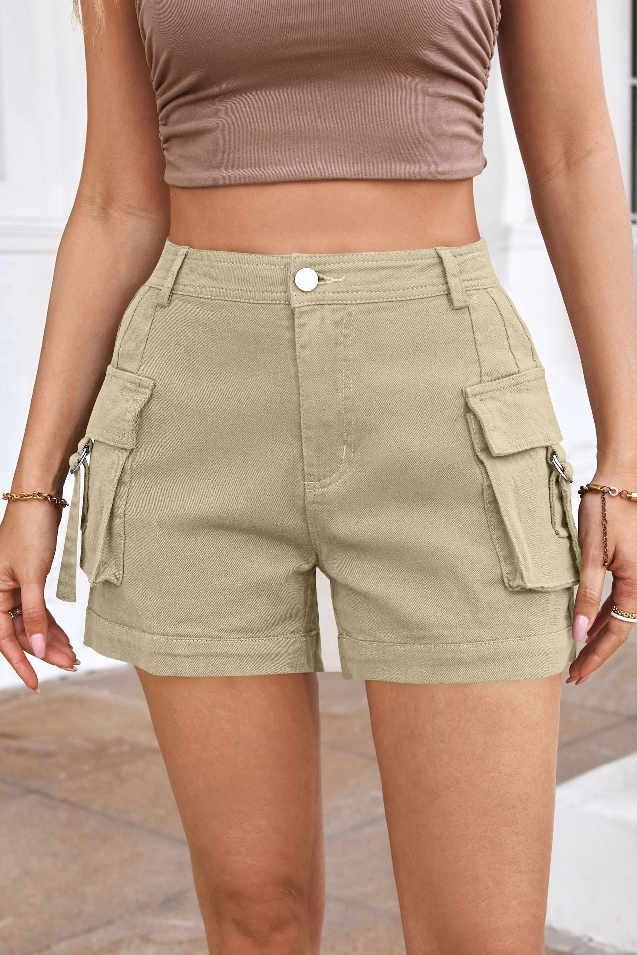 Women's High-waisted Stylish Elastic Pocket Casual Cargo Shorts